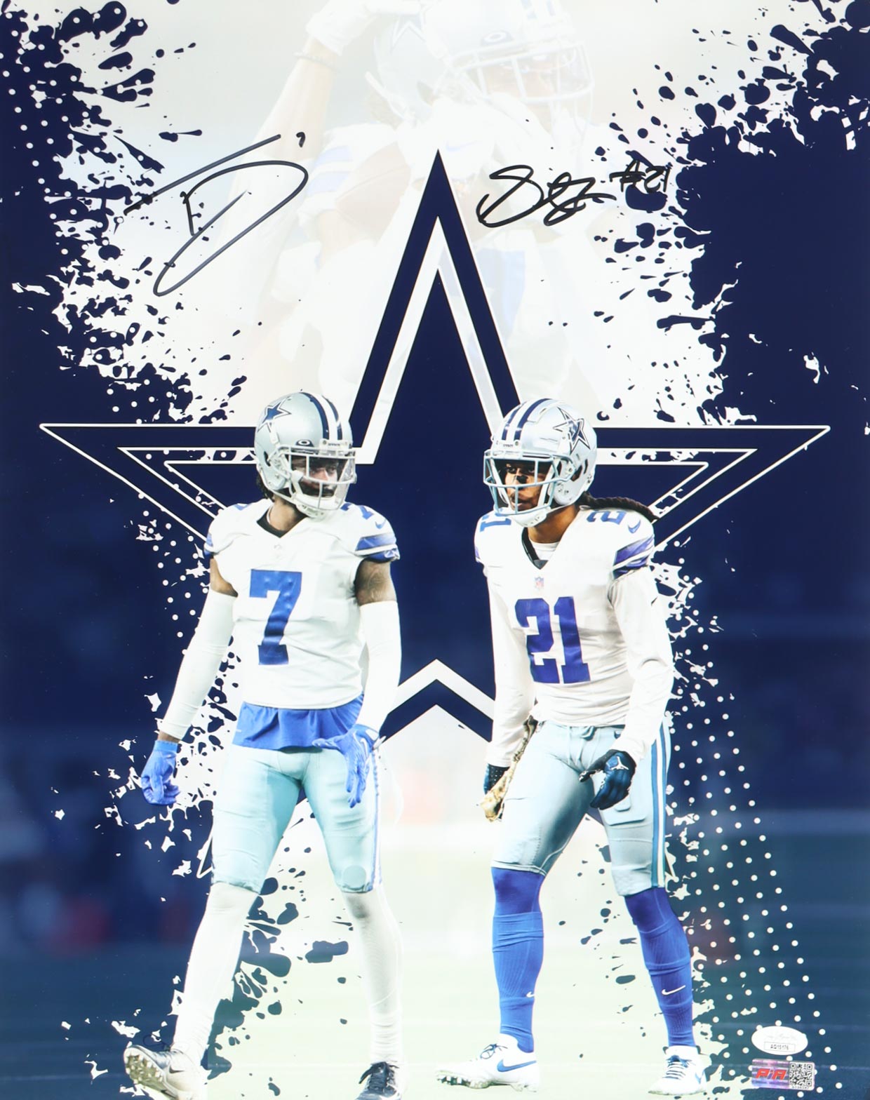Photo measures 16" x 20" in size and has been hand-signed by Trevon Diggs and Stephon Gilmore (Dallas Cowboys).