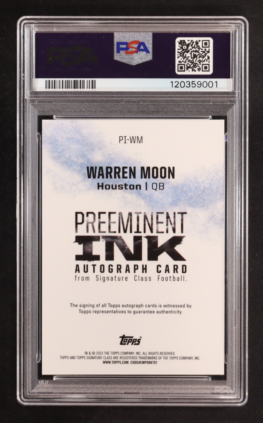 Warren Moon 2024 Topps Signature Class Preeminent Ink-Orange Refractors Auto #PI-WM #39/50 (PSA 9)