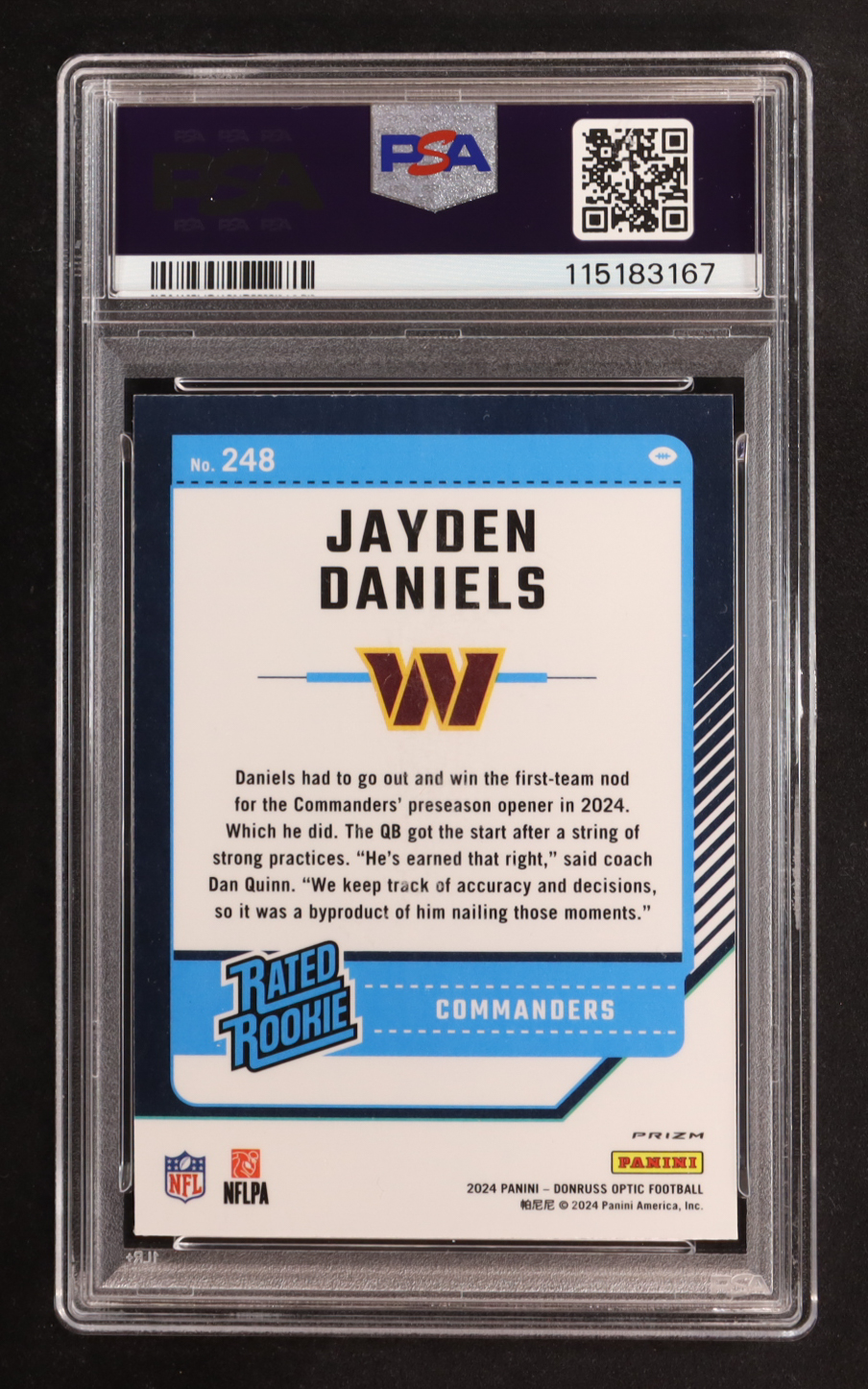 Jayden Daniels 2024 Donruss Optic Green Velocity #248 RR RC (PSA 9)