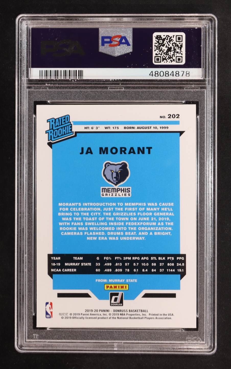 Ja Morant 2019-20 Donruss #202 RR RC (PSA 10)