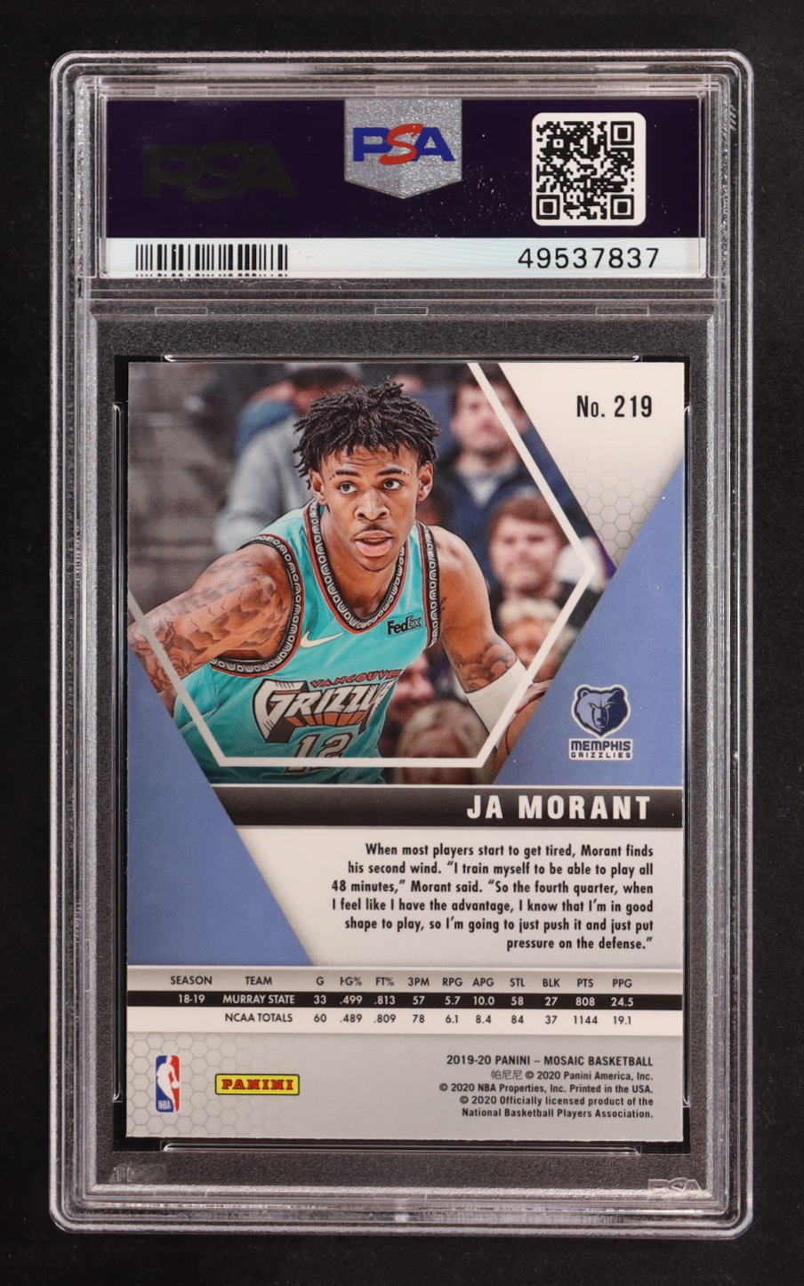 Ja Morant 2019-20 Panini Mosaic #219 RC (PSA 10)