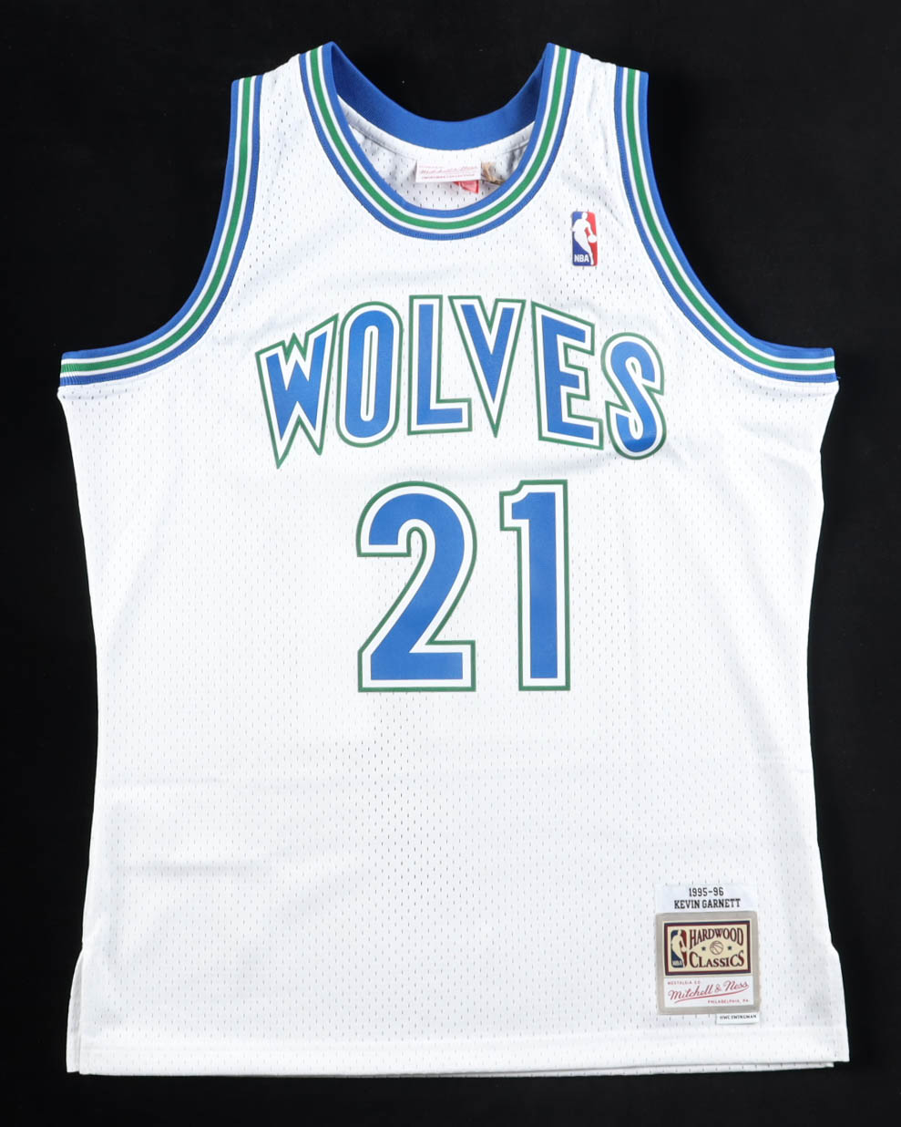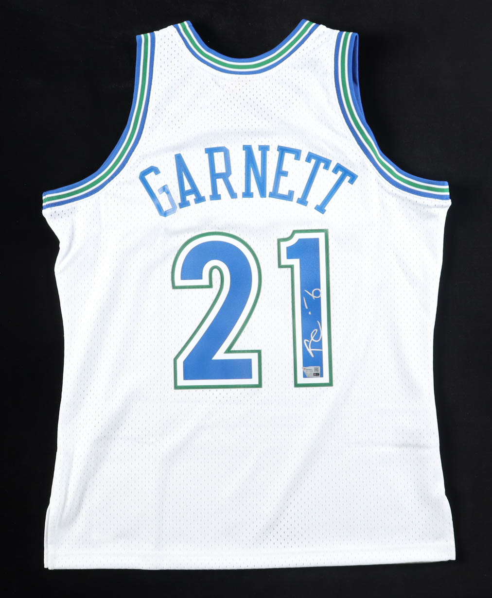 Mitchell & Ness jersey. Everything pressed on, size L. Hand-signed by Kevin Garnett (Minnesota Timberwolves, HOF).