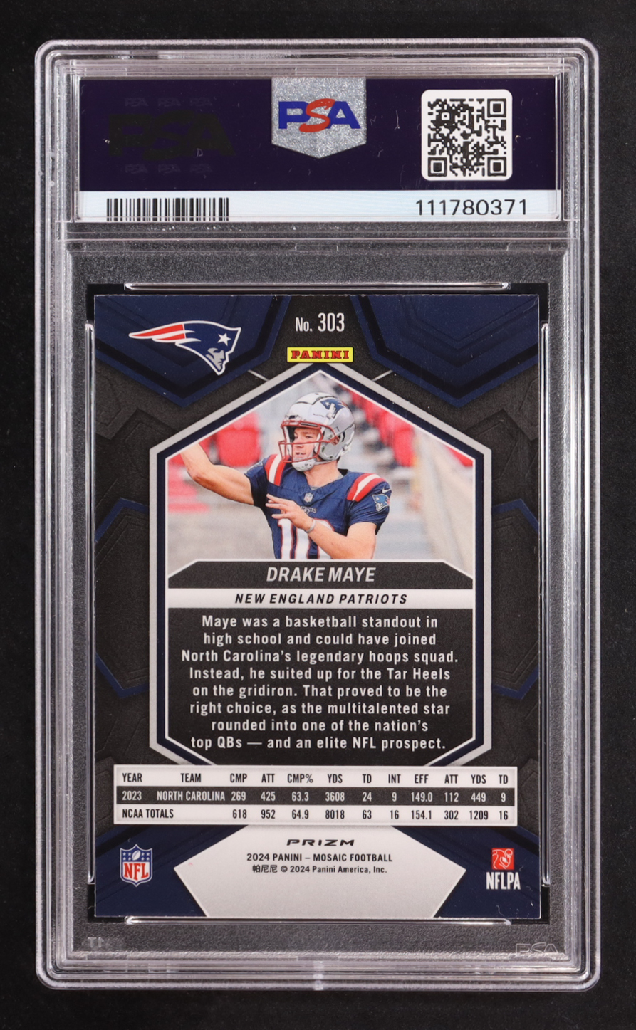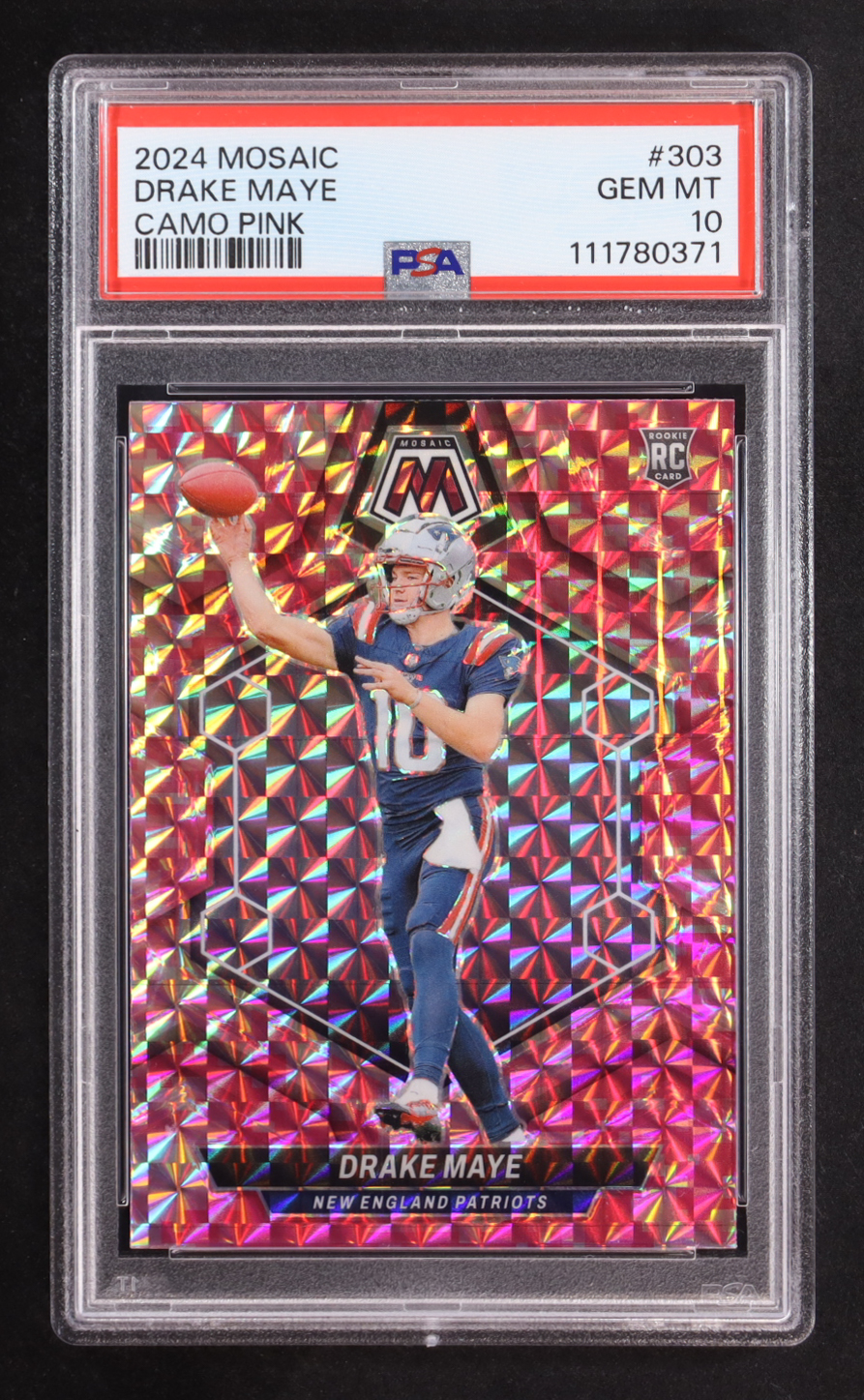 Drake Maye 2024 Panini Mosaic Mosaic Camo Pink #303 RC (PSA 10)