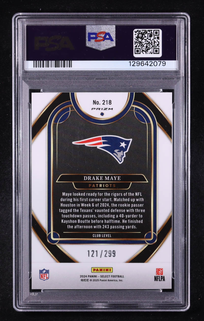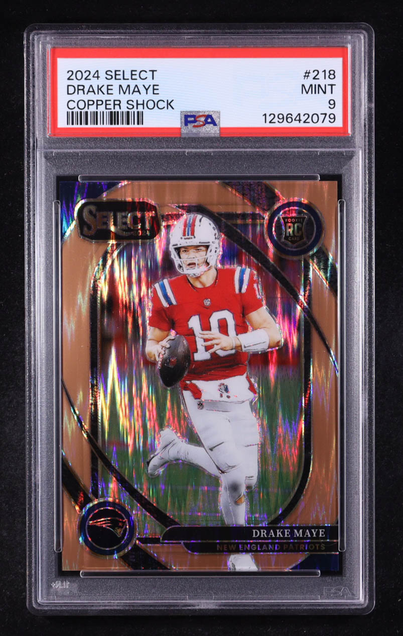 Drake Maye 2024 Select Prizm Copper Shock #218 #121/299 RC (PSA 9)