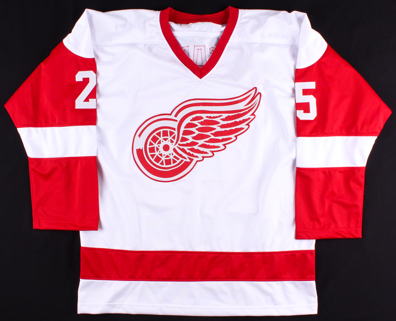 Custom on ice style jersey. Everything sewn on, size XL. Hand signed and inscribed in black felt tip pen by Darren McCarty.