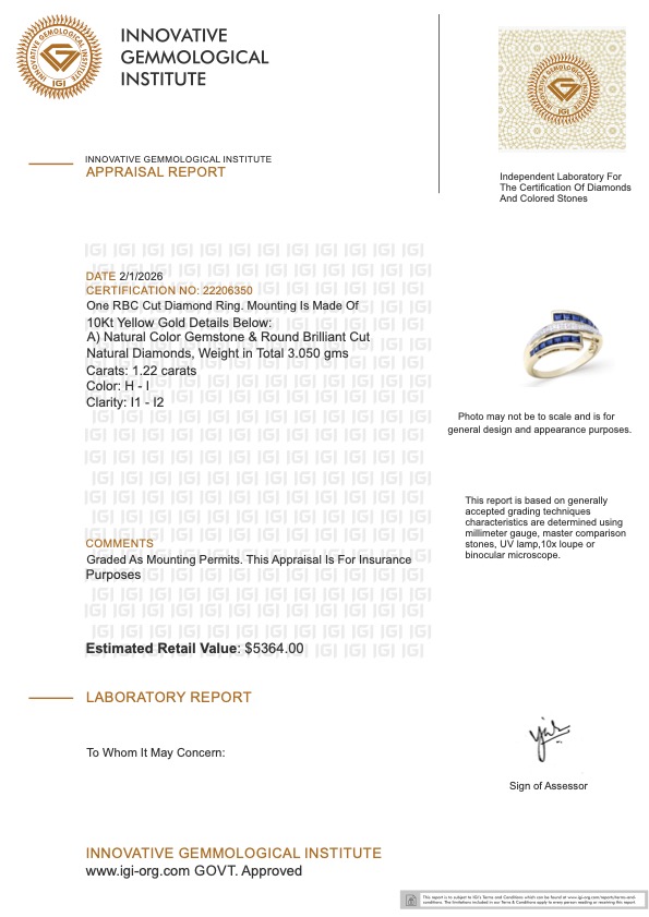 This piece includes paperwork from the Innovative Gemological Institute (IGI).