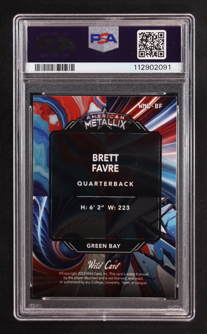 Brett Favre 2023 Wild Card American Metallix 180 Red/White/Blue 3 Lazers #WML-BF #1/1 (PSA 9)