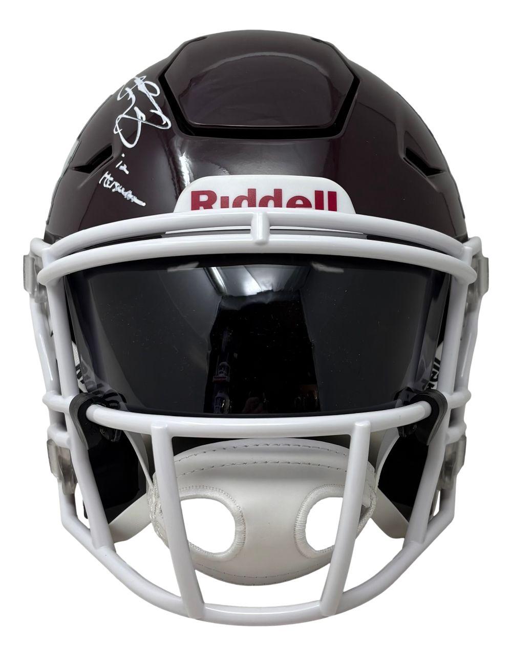 Riddell Texas A&M Aggies mid-size speedflex helmet has been hand-signed and inscribed by Johnny Manziel.