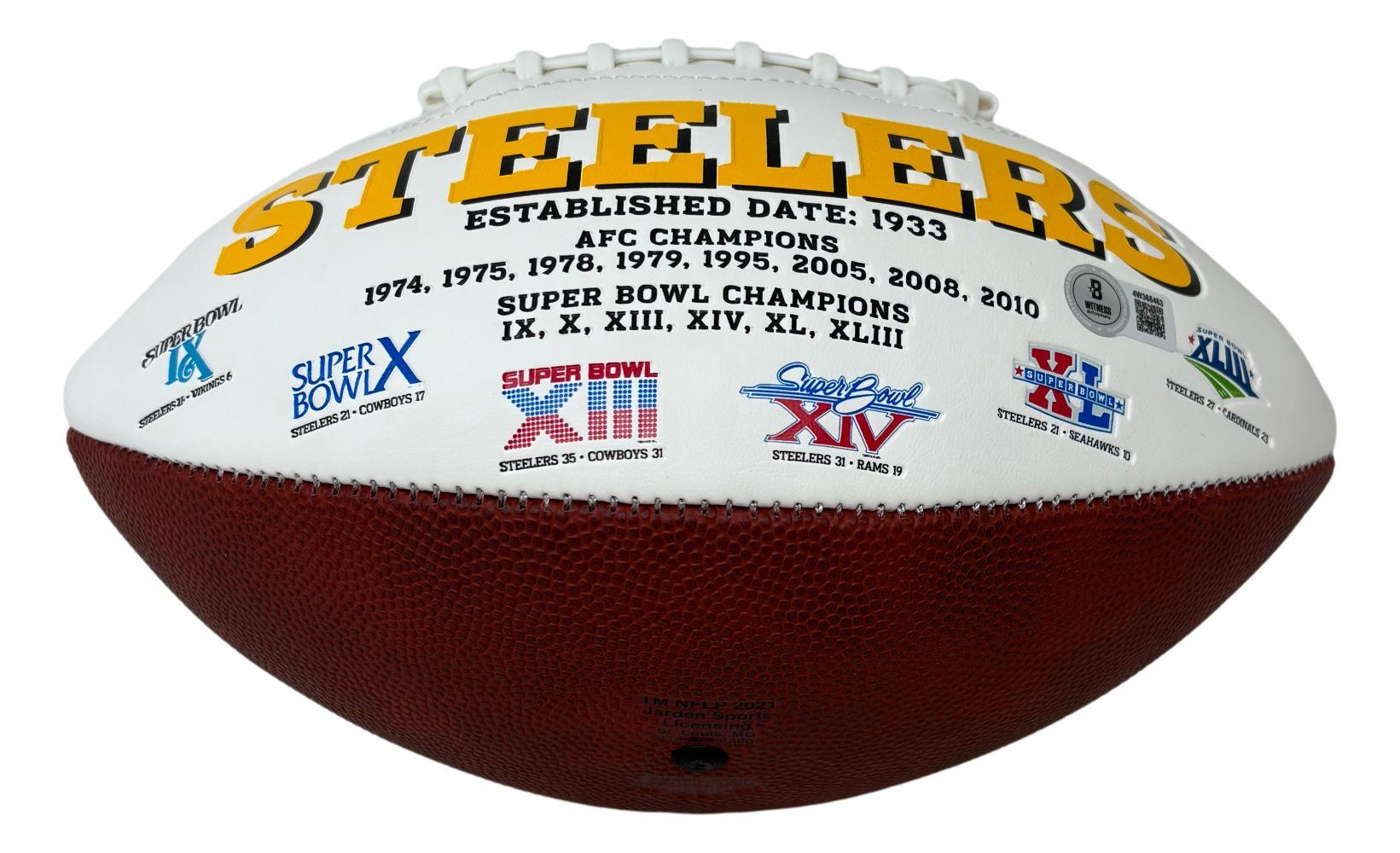 Pittsburgh Steelers logo football has been hand-signed by Hines Ward.