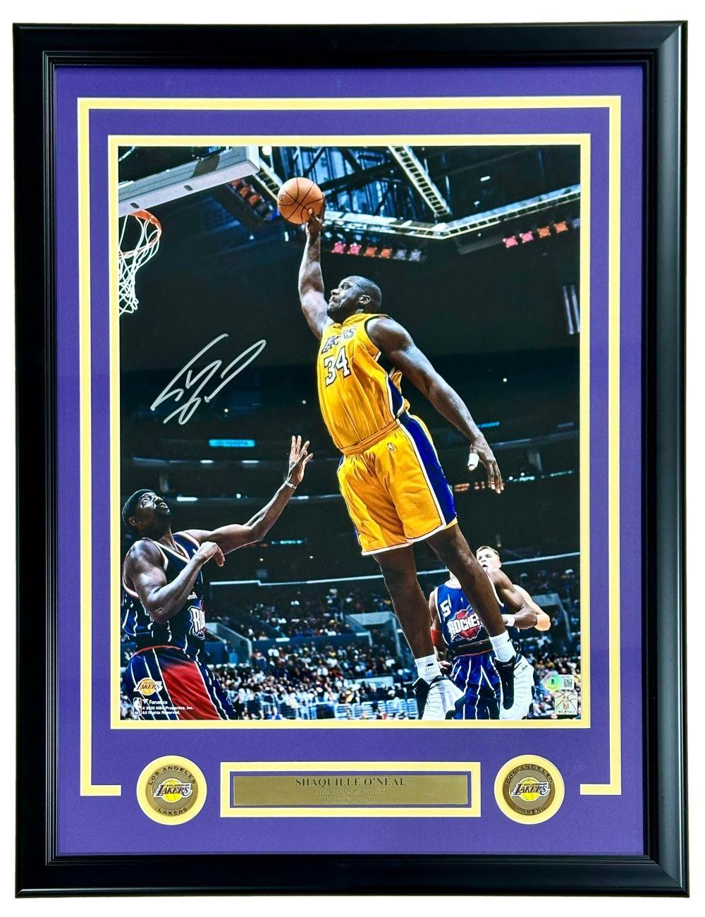 Custom frame measures 22” x 29” in size and features a photo that has been hand-signed by Shaquille O'Neal (Los Angeles Lakers, HOF).