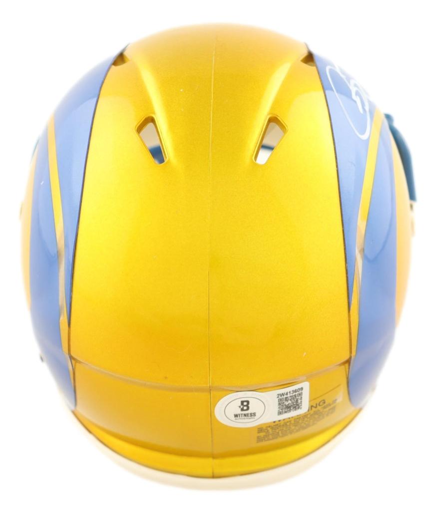 Riddell Los Angeles Rams flash alternate speed mini helmet has been hand-signed and inscribed by Isaac Bruce (HOF).