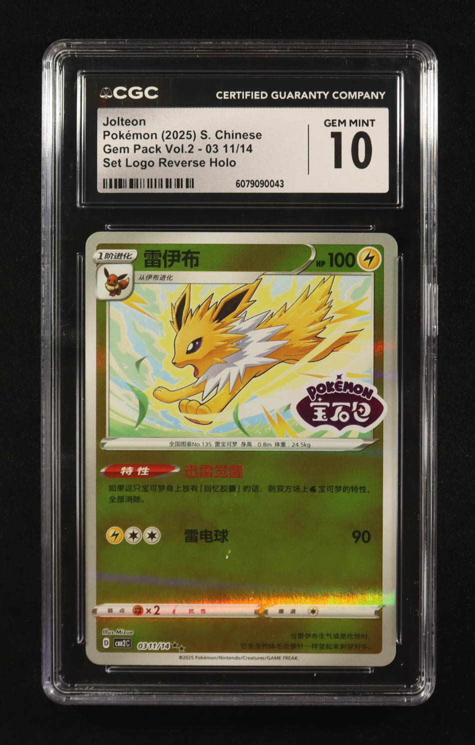 Jolteon 2025 Pokemon TCG Scarlet & Violet Gem Pack Vol.2 Simplified Chinese #0311 STAMP HOLO RR (CGC 10)