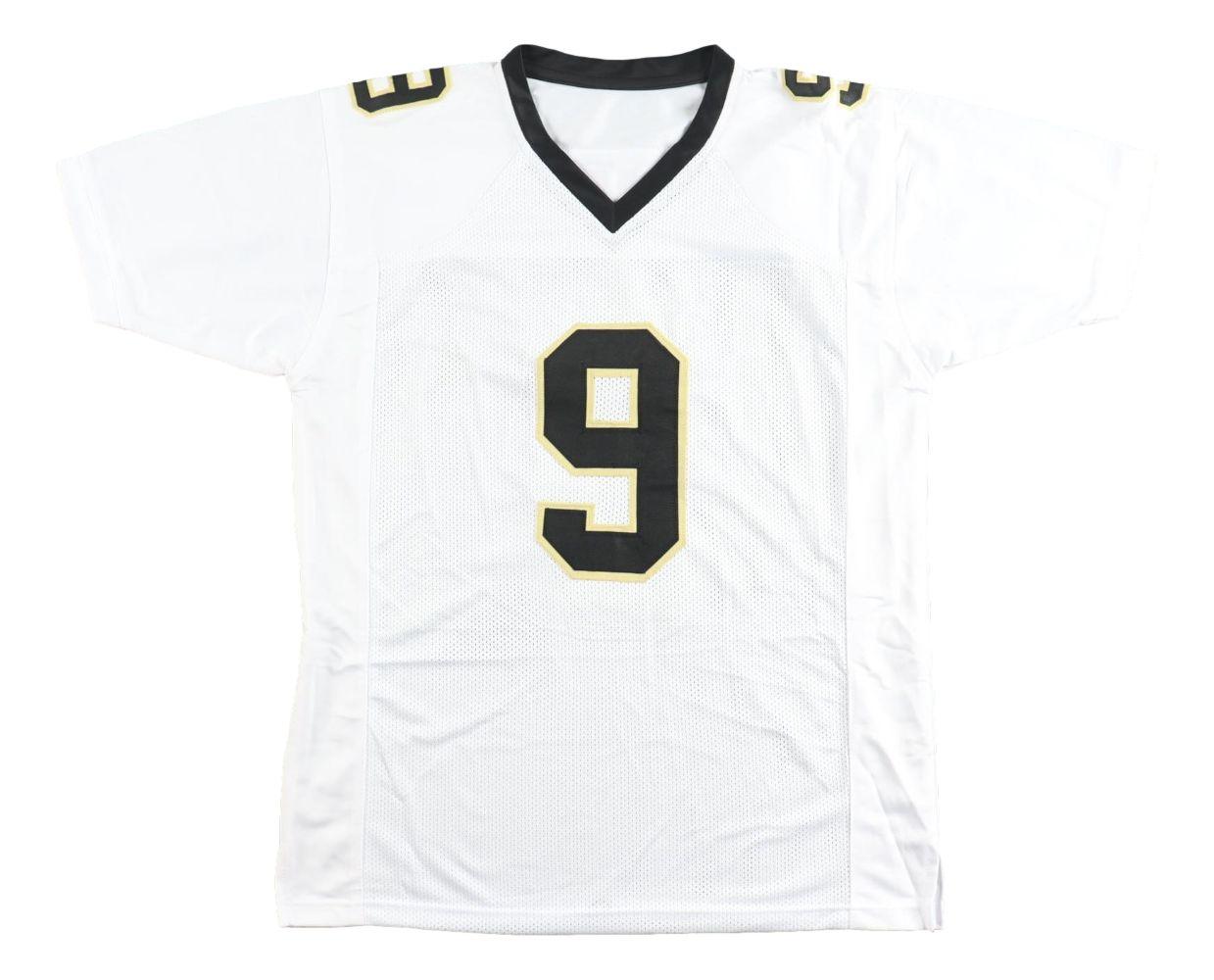 Custom jersey with everything sewn on, size XL. Hand-signed and inscribed by Drew Brees.