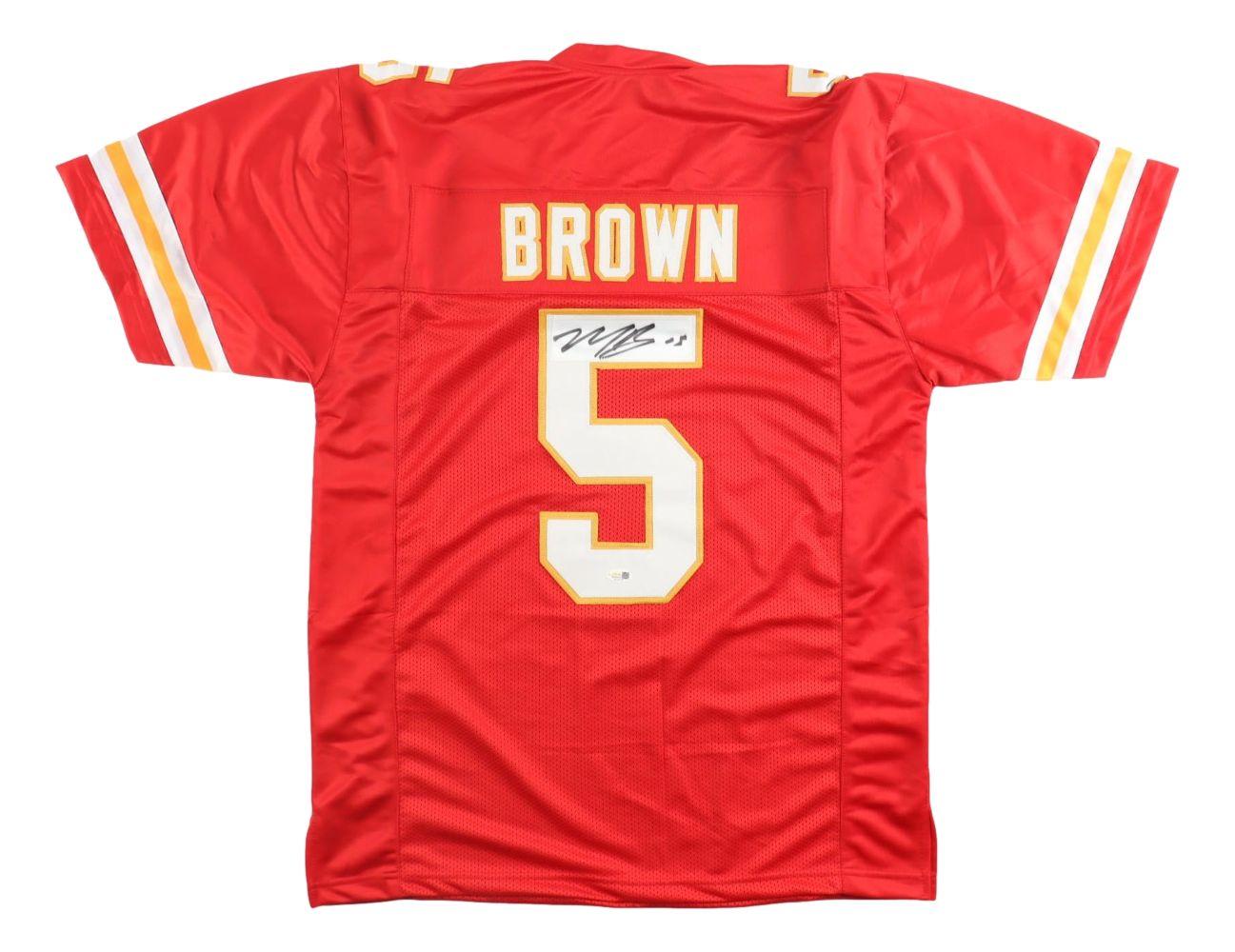 Custom jersey with everything sewn on, size XL. Hand-signed by Hollywood Brown.