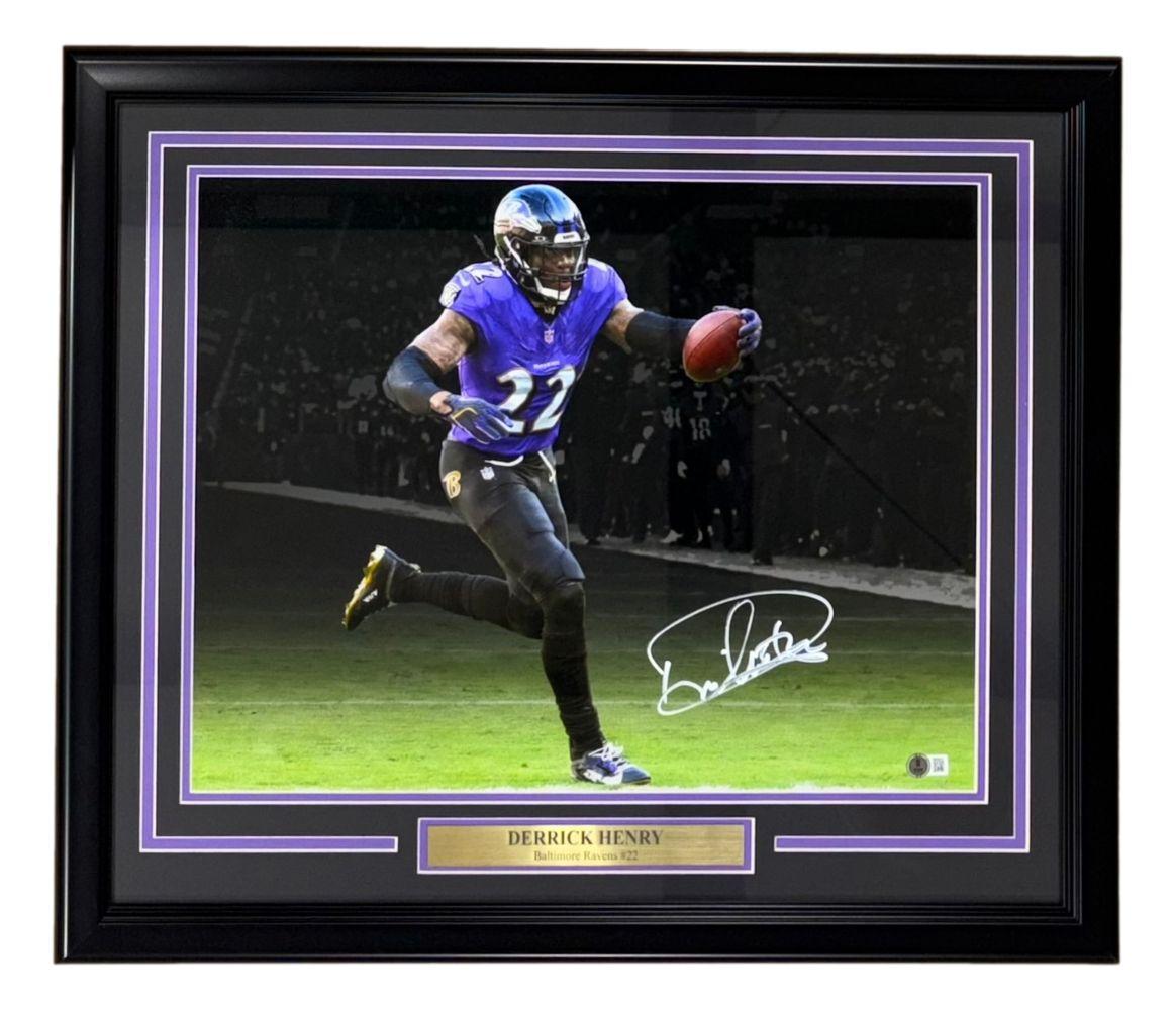 Derrick Henry Signed Ravens Custom Framed Photo (Beckett)