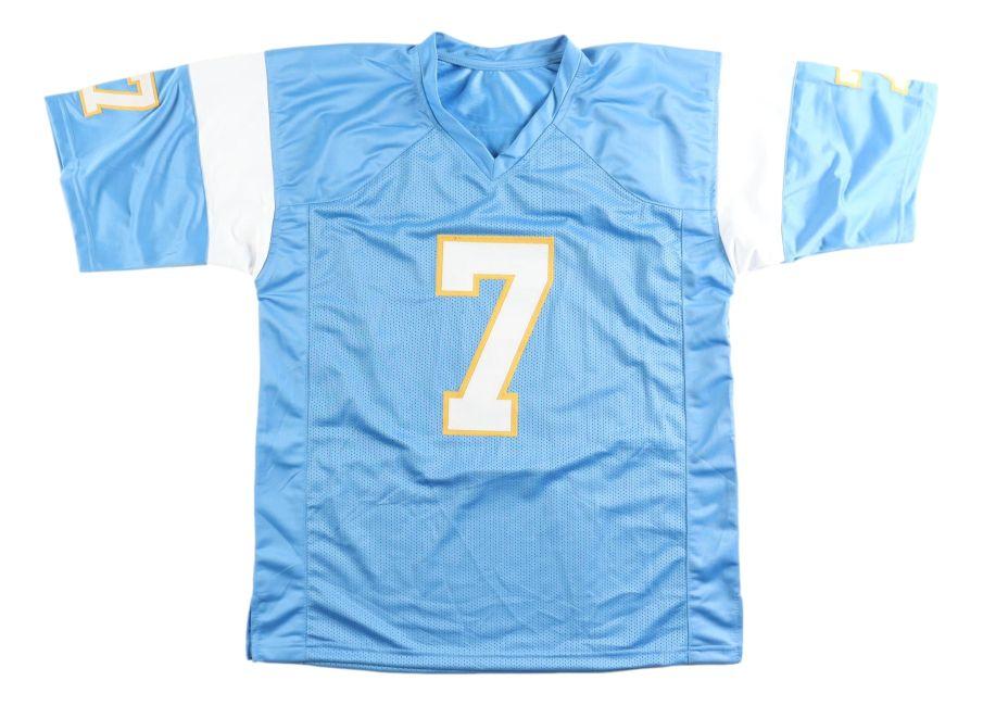 Custom jersey with everything sewn on, size XL. Hand-signed by Doug Flutie.