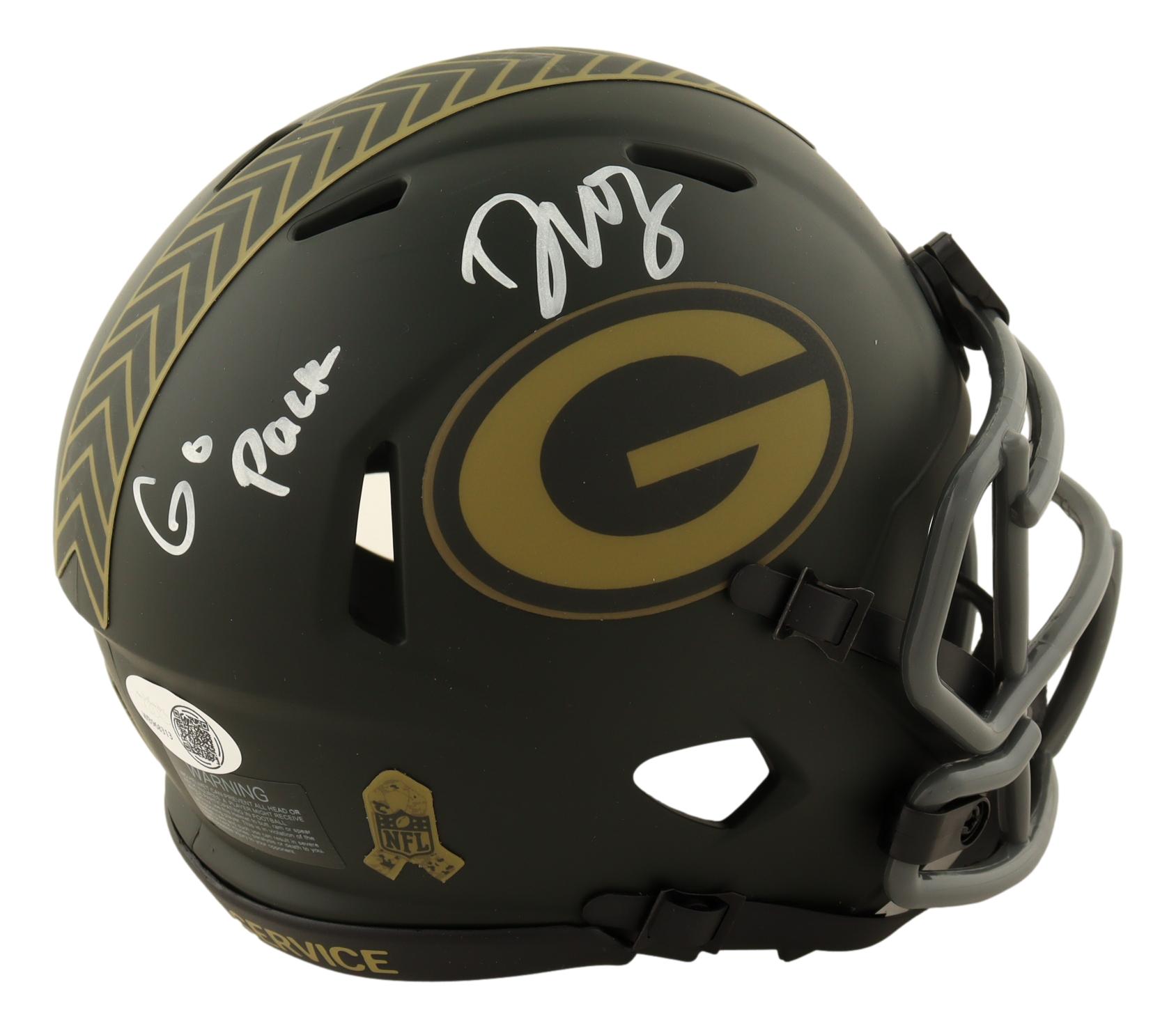 Dontayvion Wicks Signed Packers Salute To Service Alternate Speed Mini Helmet Inscribed "Go Pack" (JSA)