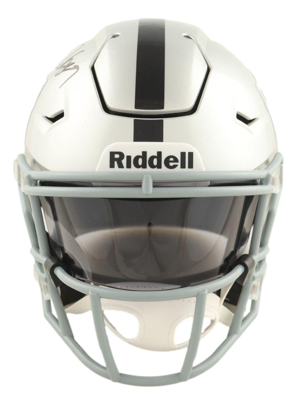 Riddell Oakland Raiders mid-size speedflex helmet has been hand-signed by Bo Jackson. Custom visor is included as shown.