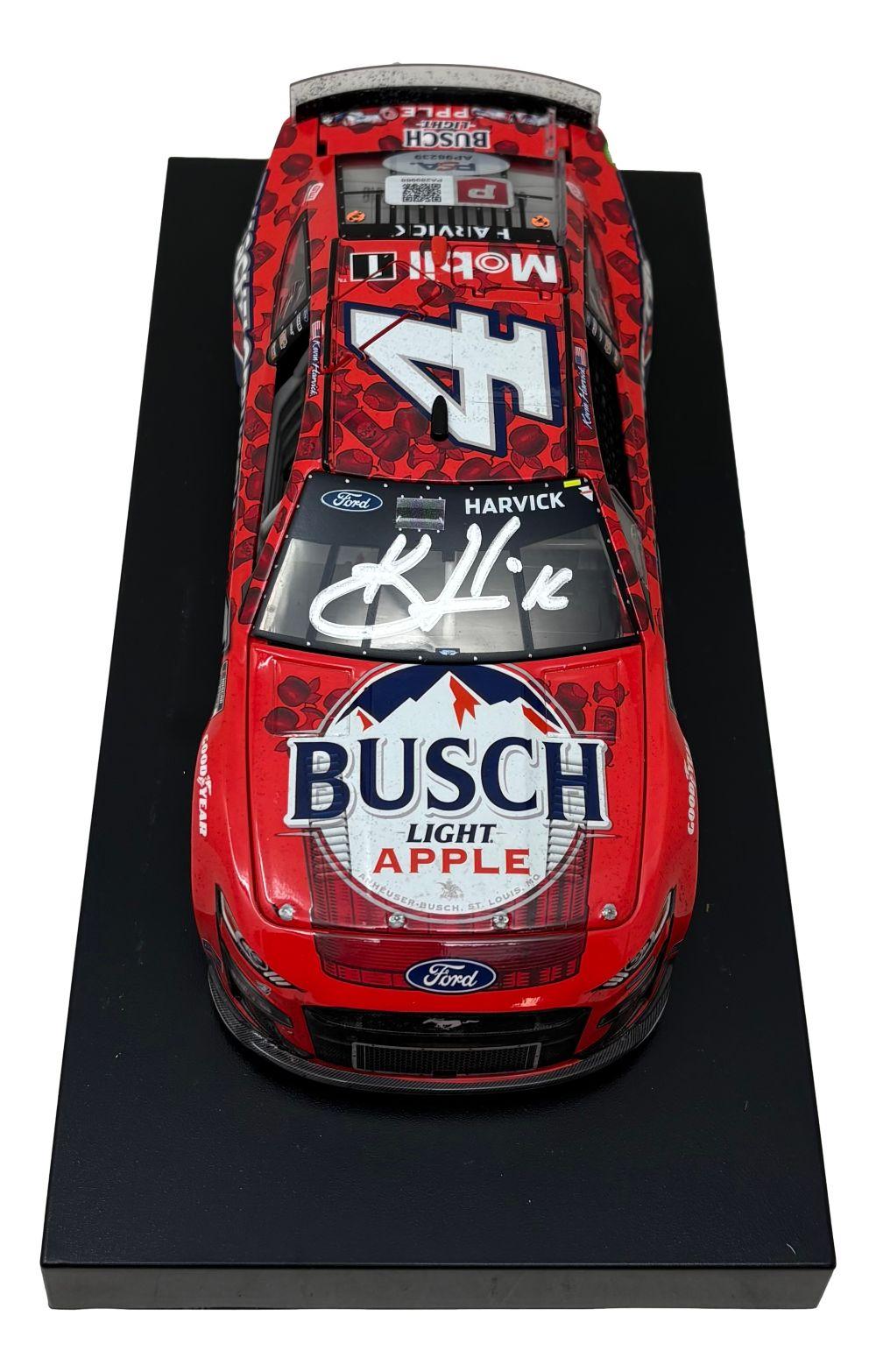 NASCAR premium die-cast car has been hand-signed on the windshield by Kevin Harvick.