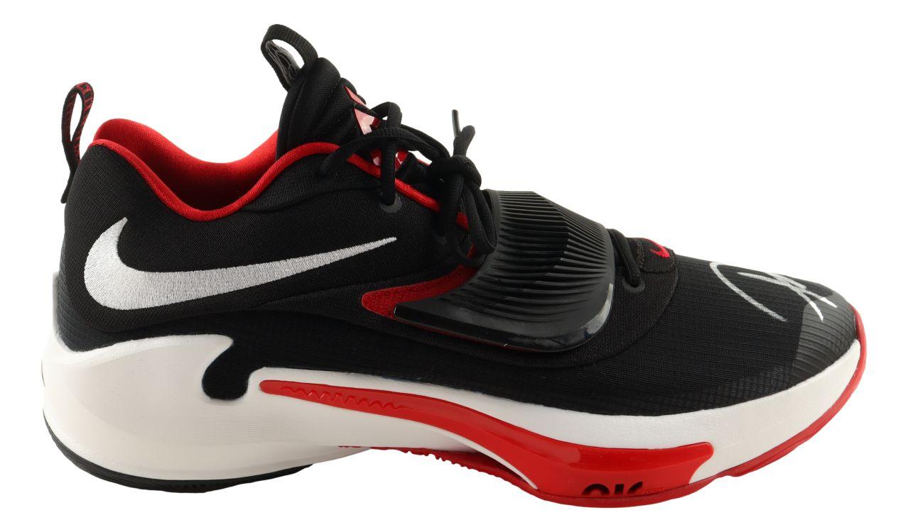 Nike Zoom Freak 3 Bred basketball shoe, size 17, has been hand-signed by Giannis Antetokounmpo (Milwaukee Bucks).
