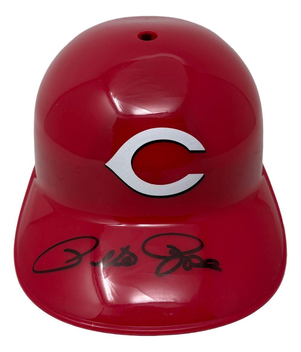 Cincinnati Reds full-size replica batting helmet has been hand-signed by Pete Rose (D. 2024).