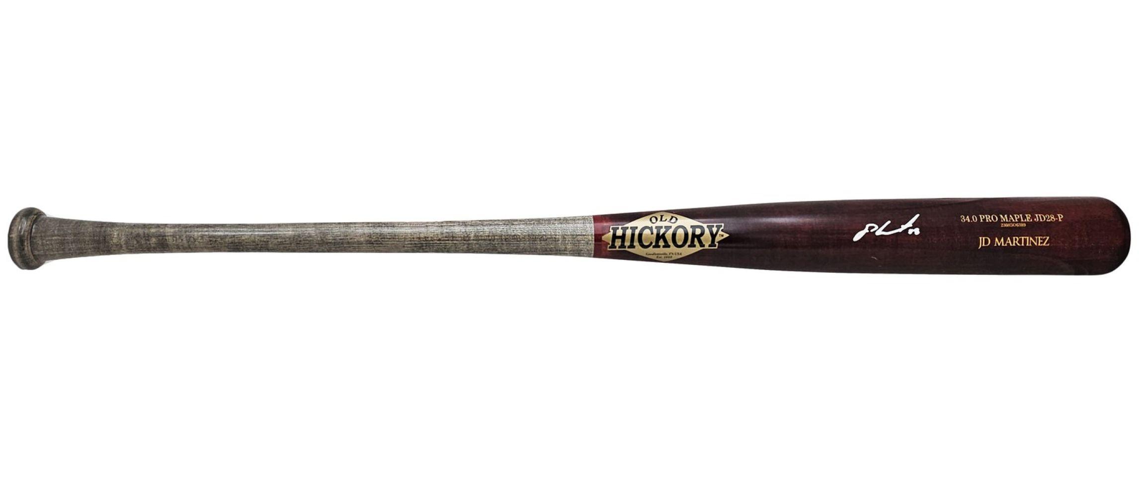Old Hickory player model baseball bat has been hand-signed by J. D. Martinez (Boston Red Sox).