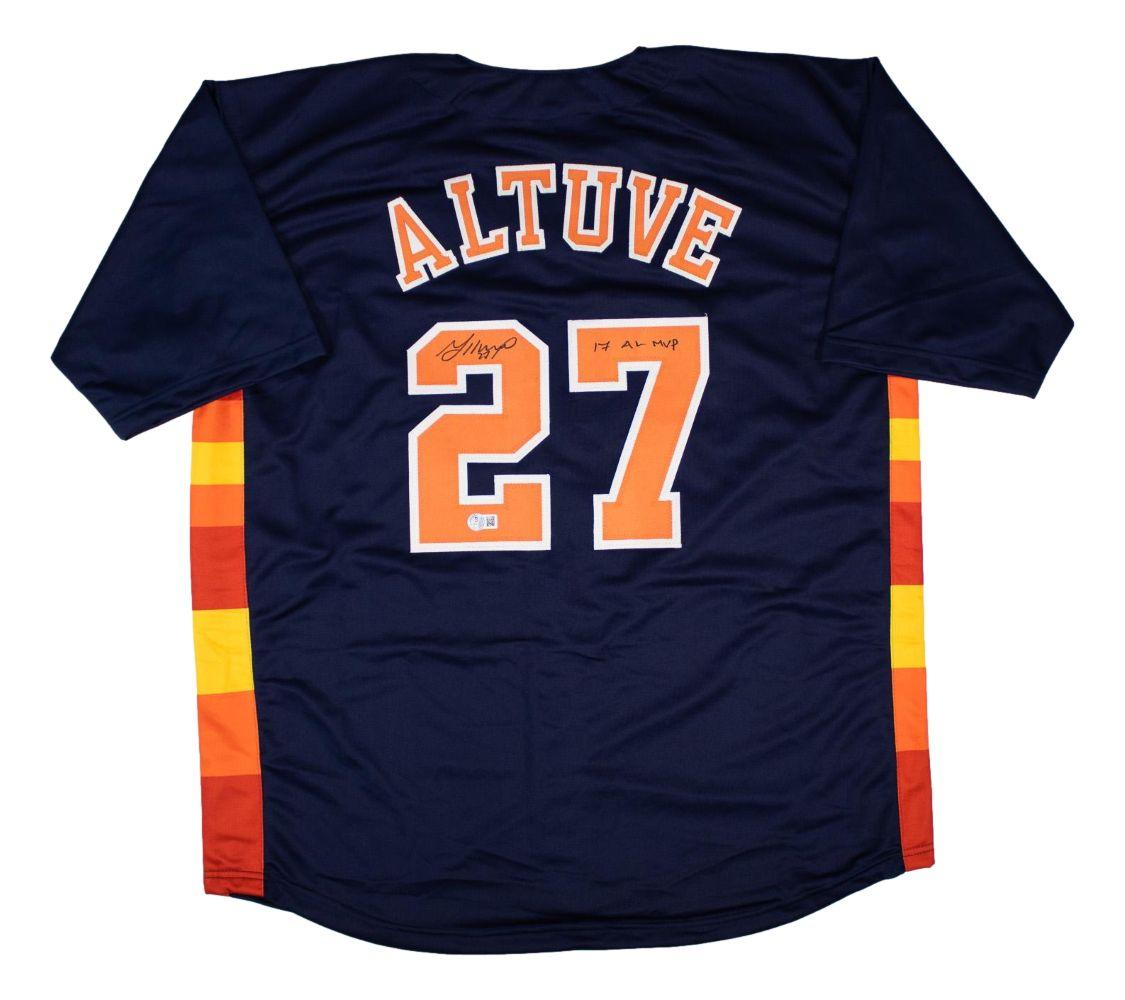 Custom jersey with everything sewn on, size XL. Hand-signed and inscribed by Jose Altuve.