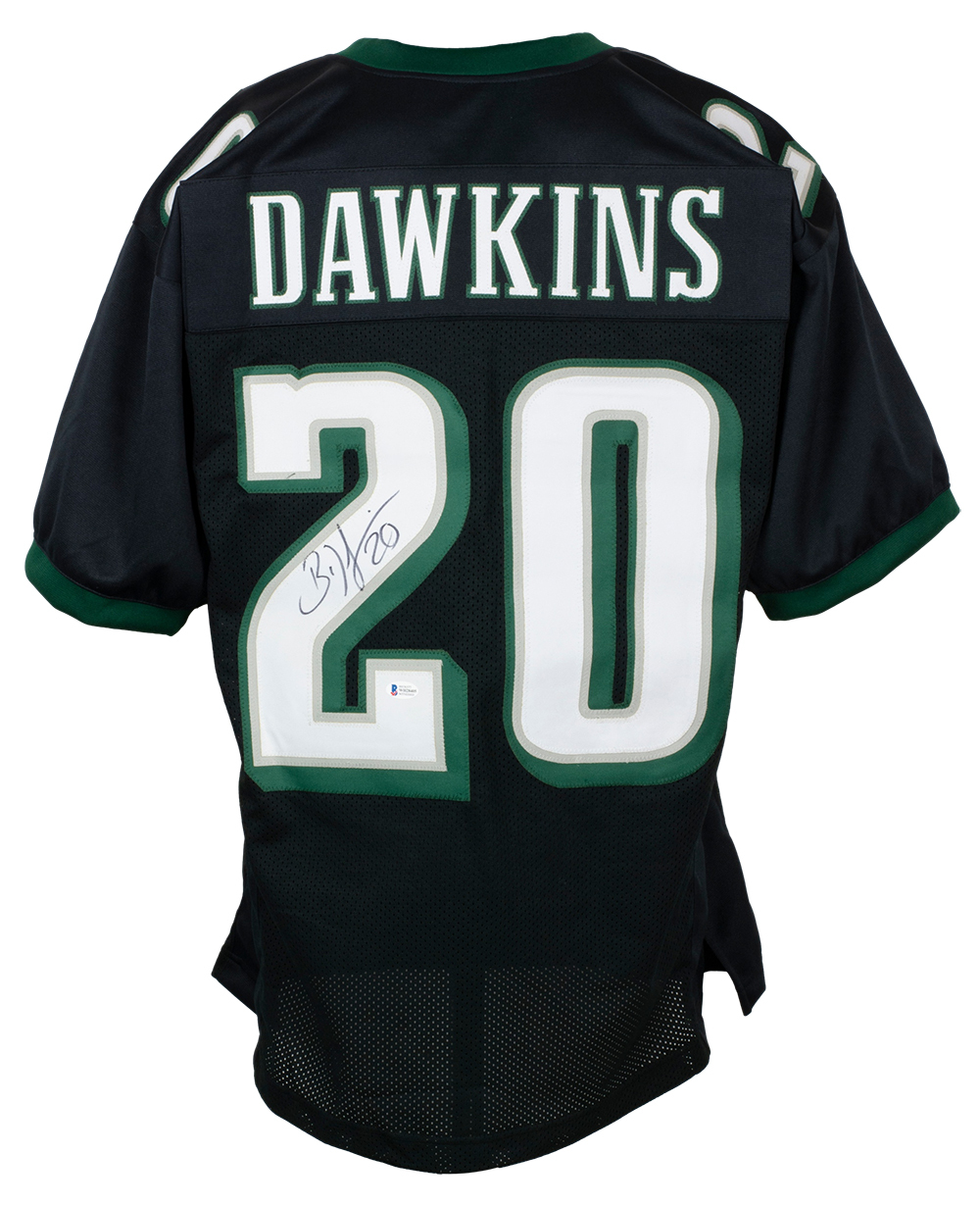 Jersey with everything sewn on, size XL. Hand-signed by Brian Dawkins (HOF).