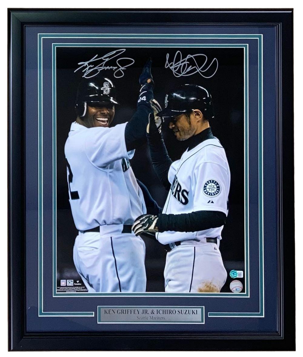 Custom frame measures 22” x 27” in size and features a photo that has been hand-signed by Ken Griffey Jr. (HOF) and Ichiro Suzuki (Seattle Mariners).