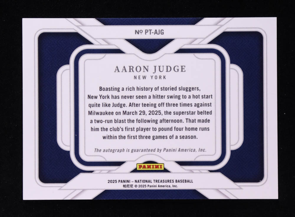 Aaron Judge 2025 Panini National Treasures Personalized Treasures Material Autographs #1 #29/35