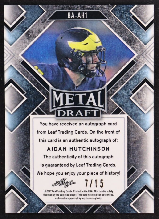 Aidan Hutchinson 2022 Metal Draft Pink Wave Autographs #BAAH1 #7/15 RC