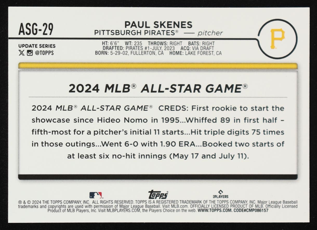 Paul Skenes 2024 Topps Update '24 All-Star Game Blue #ASG29 RC