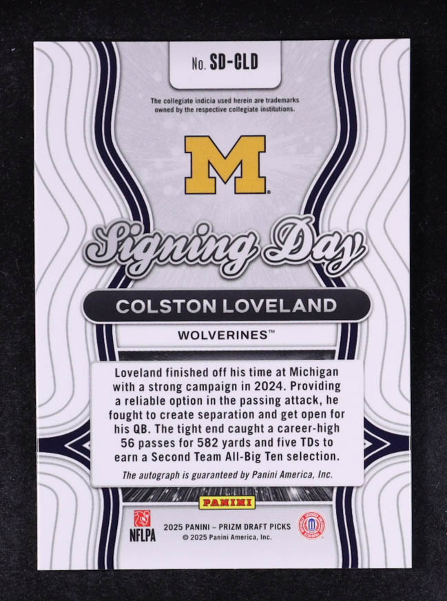 Colston Loveland 2025 Panini Prizm Draft Picks Signing Day #27 RC