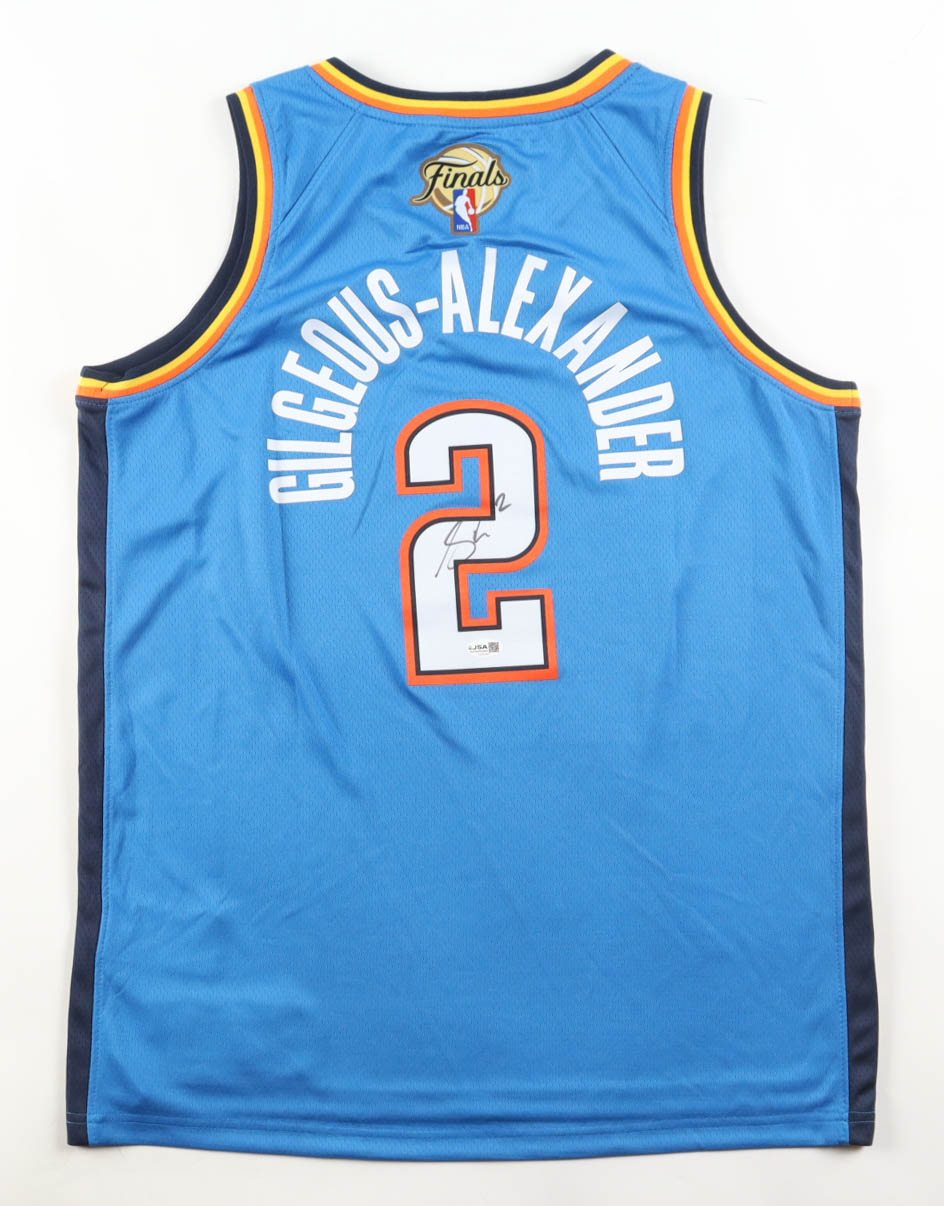 Nike authentic jersey with everything pressed on, size 48. Hand-signed by Shai Gilgeous-Alexander (Oklahoma City Thunder).
