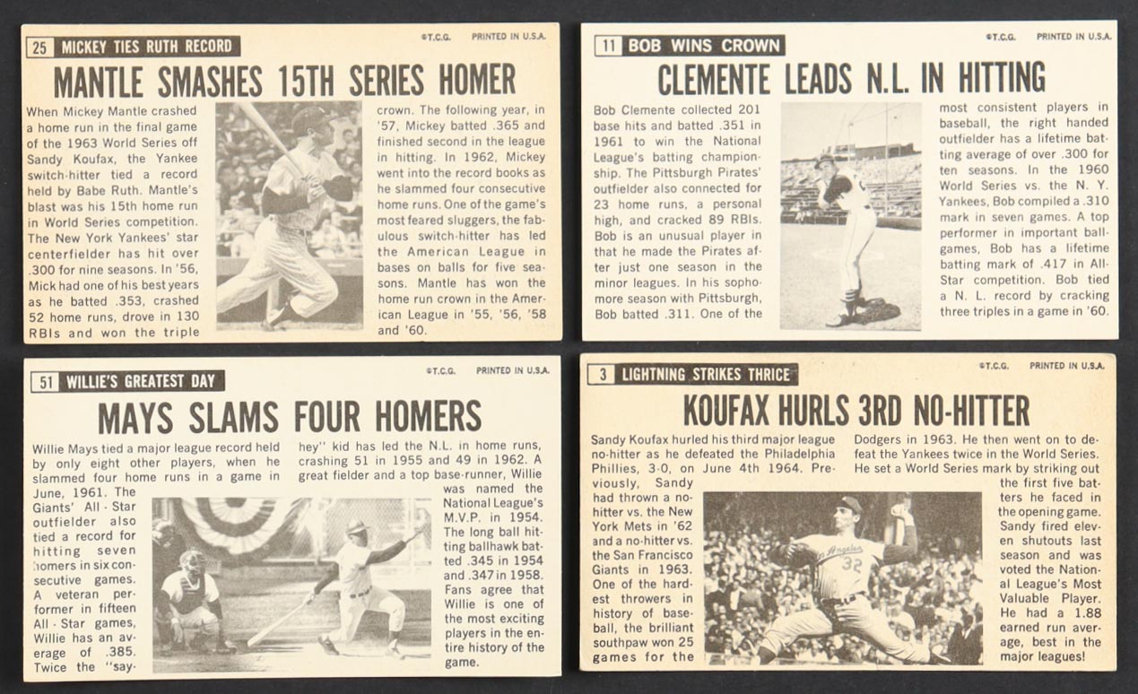 The set consists of 60 cards and includes many of the era’s biggest stars, such as Mickey Mantle, Willie Mays, Hank Aaron, Sandy Koufax, and Roberto Clemente. Mantle’s card is especially popular and remains one of the most recognizable pieces from the set. The backs provide biographical information and career highlights, keeping the focus on the players themselves rather than flashy graphics.