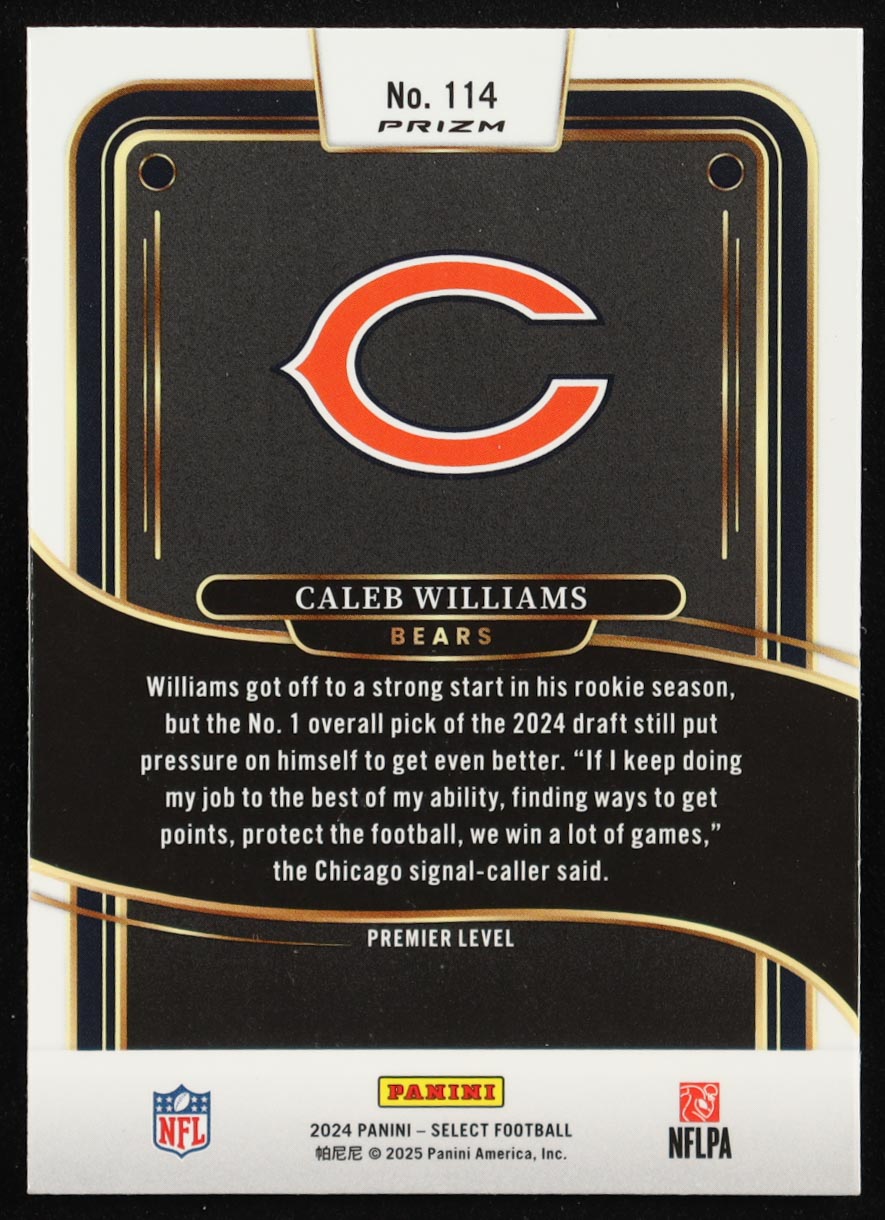 Caleb Williams 2024 Select Prizm Black and Gold Shock #114 RC