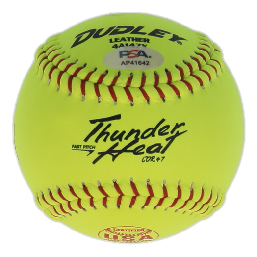 Dudley Thunder Heat Softball. Hand-signed and inscribed by Jennie Finch (Team USA).