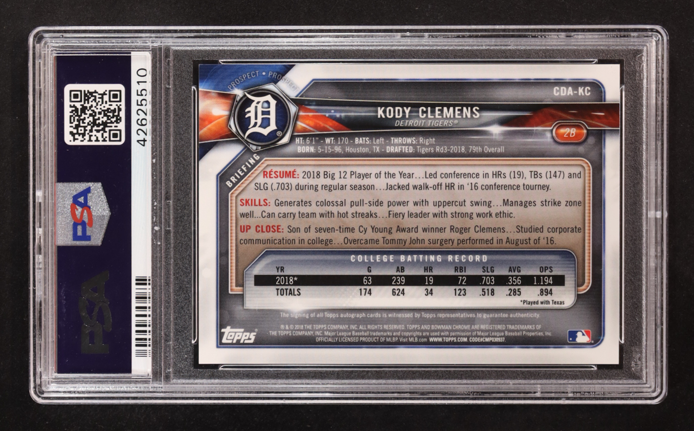 Kody Clemens 2018 Bowman Chrome 1st Draft Picks Auto #CDAKC RC (PSA 10)