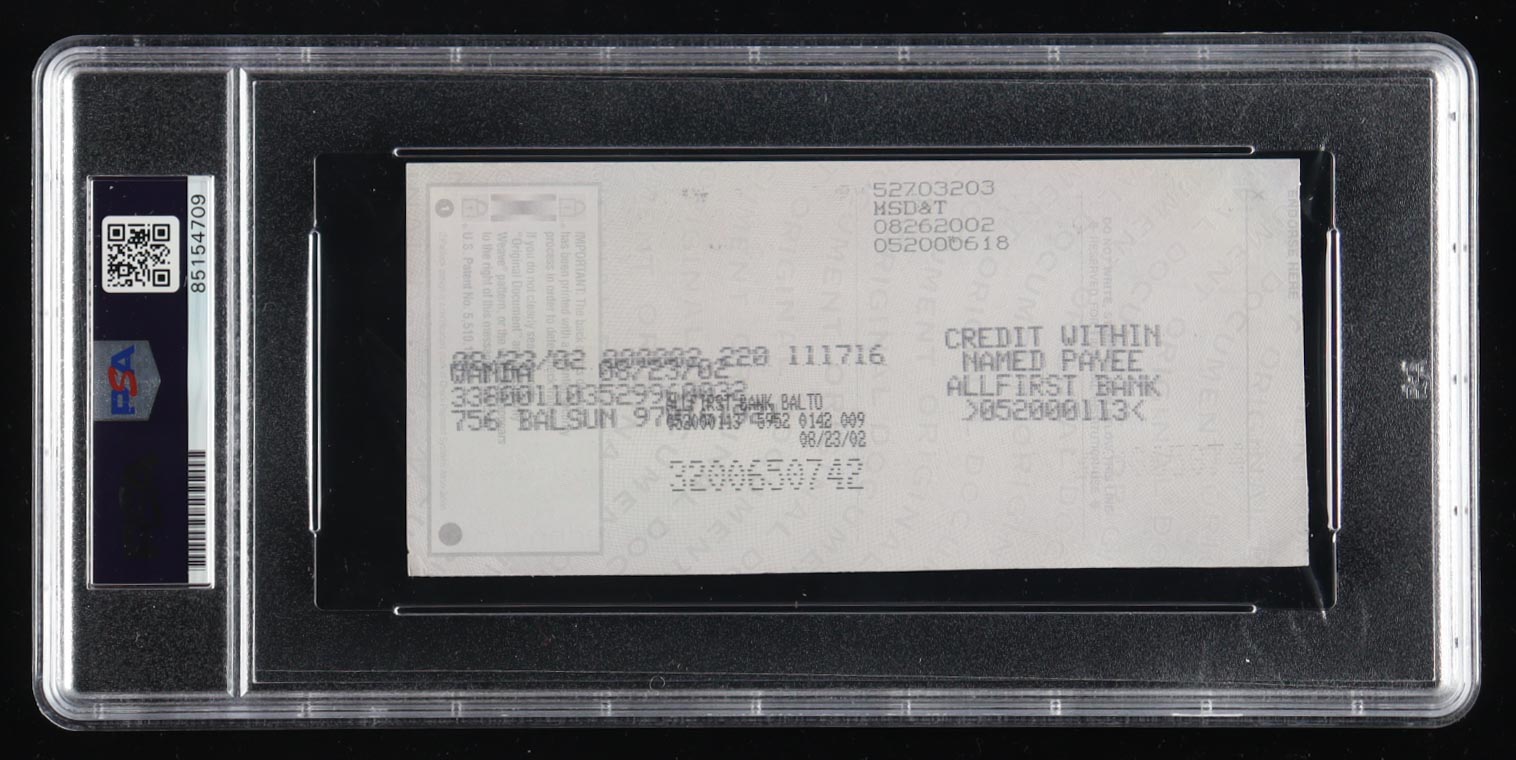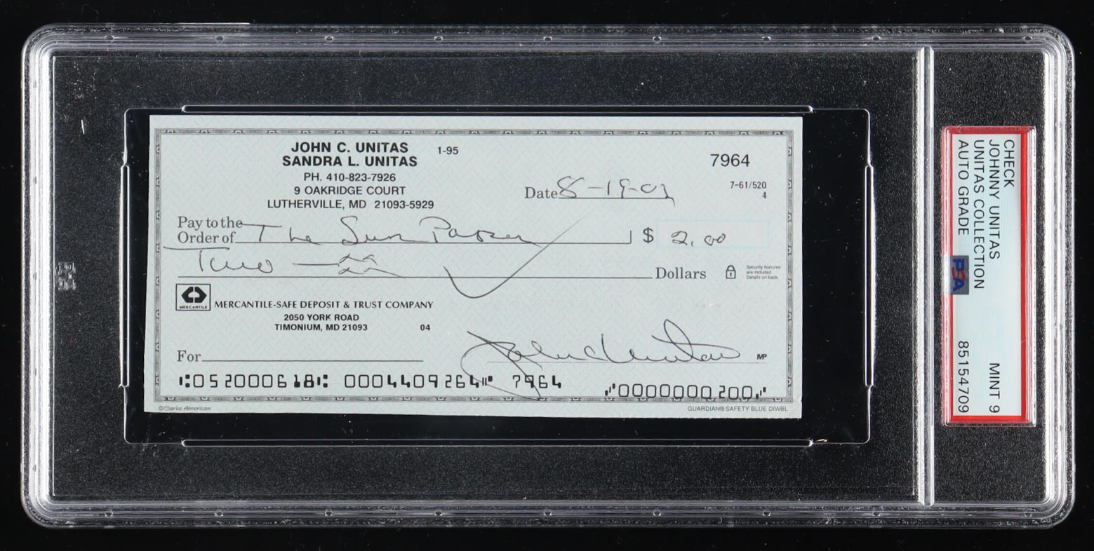 Johnny Unitas Signed 2001 Personal Check (PSA | Autograph Graded 9)