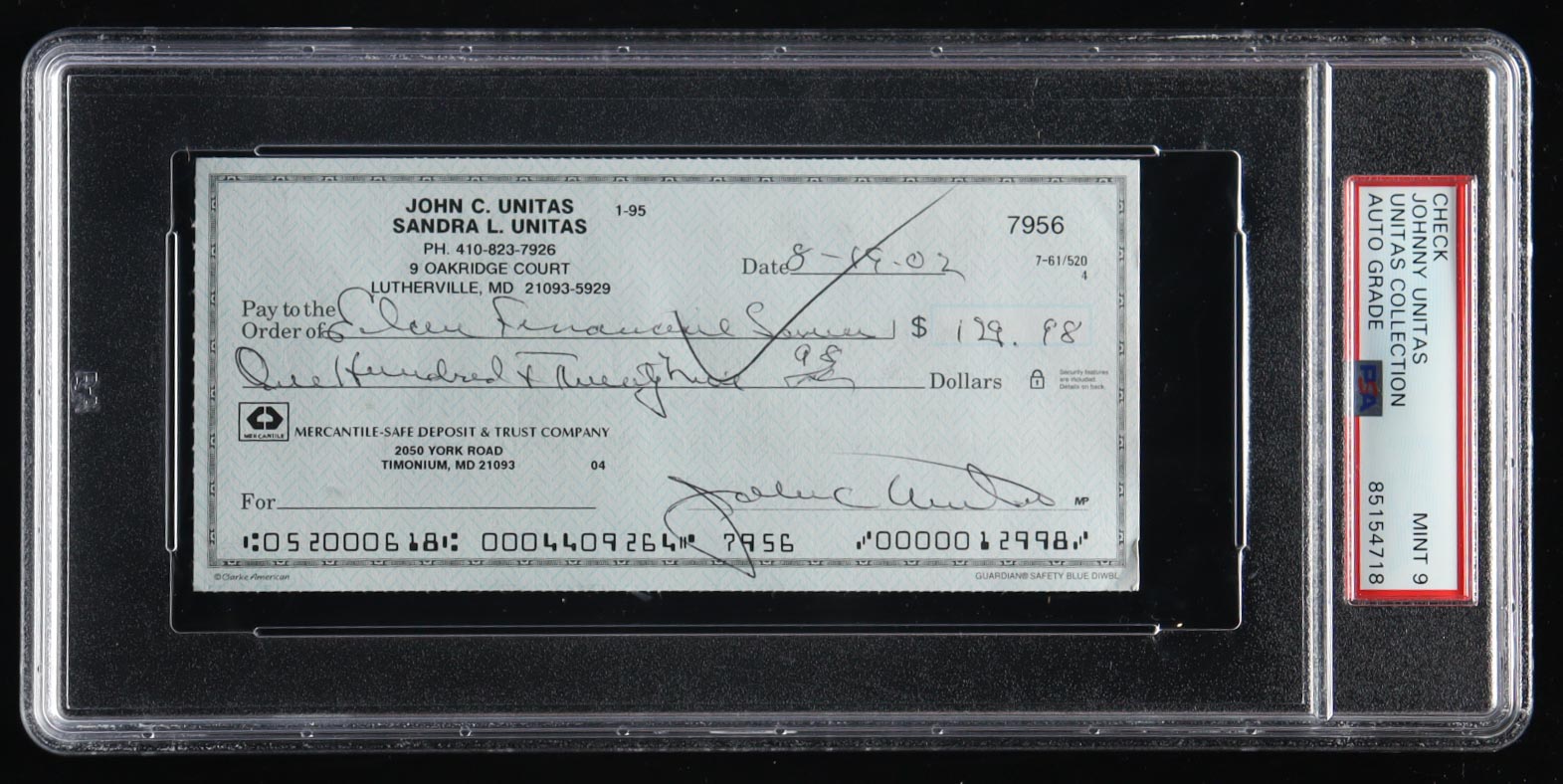 Johnny Unitas Signed 2002 Personal Check (PSA | Autograph Graded 9)