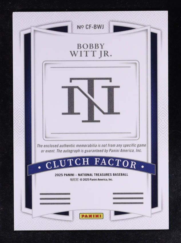 Bobby Witt Jr. 2025 Panini National Treasures Clutch Factor Signature Jerseys #8 #89/99
