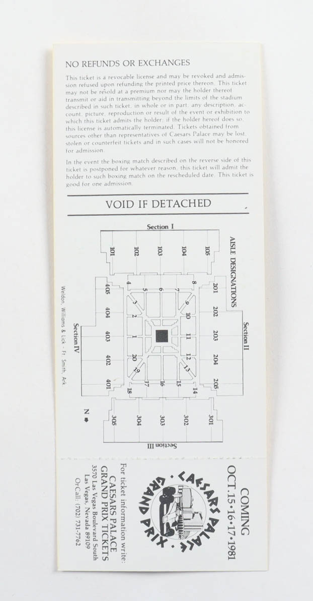 September 16, 1981 World Welterweight Championship with Sugar Ray Leonard vs. Tommy Hearns Original Fight ticket. Please see photos for details regarding the item. Note that the item is unsigned.