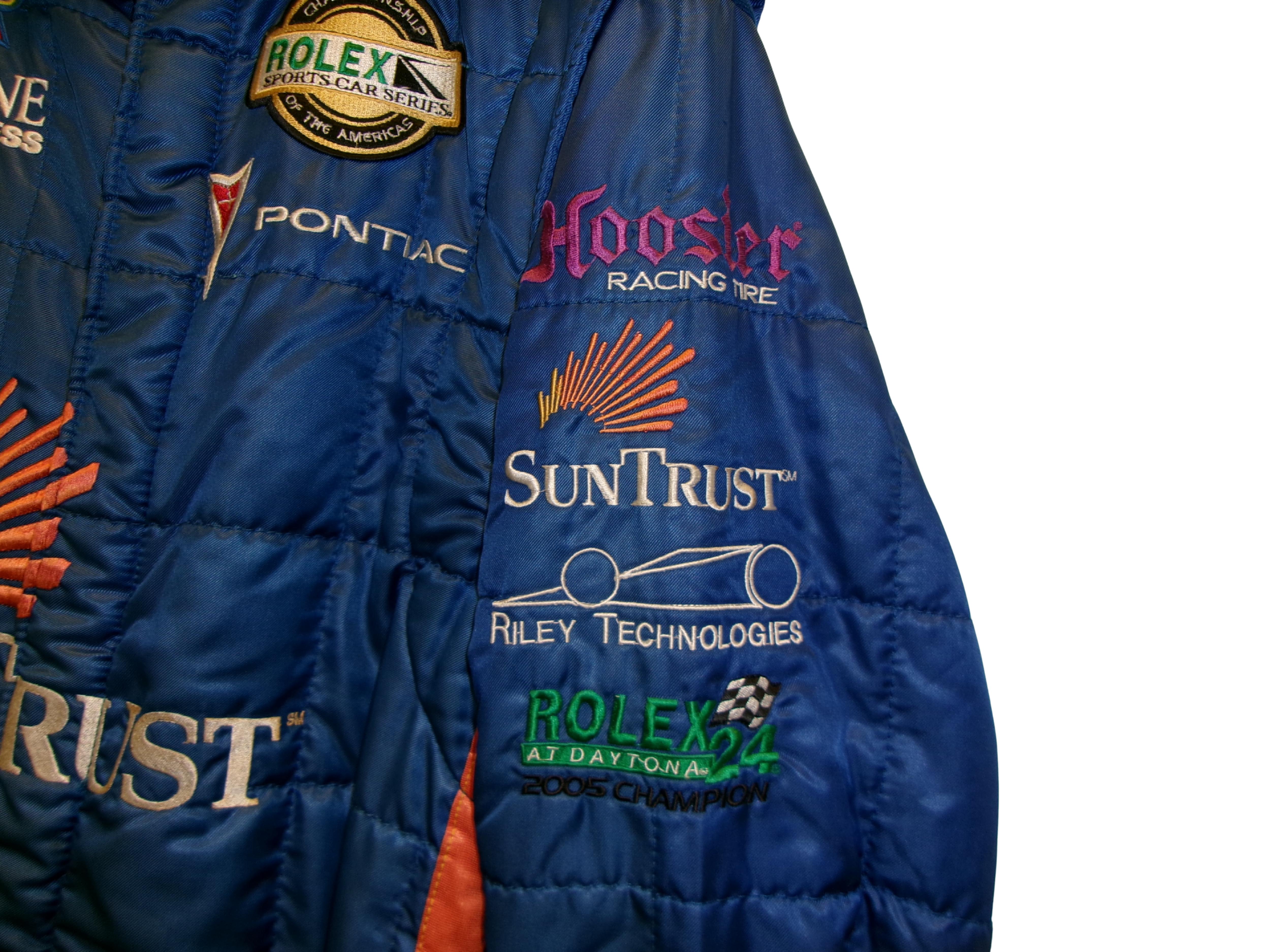 Wayne Taylor Racing (WTR) is a sports car racing team founded in 2004 by racing driver Wayne Taylor as the Riley Technologies factory team, with title sponsorship from bank holding company SunTrust. This gorgeous cobalt blue fire suit is a replica of the ones worn post-2005 by the SunTrust team, such as during the 2006 Rolex Sports Cars Series Crown Royal 200 at The Glen, where drivers Max Angelelli and Ryan Briscoe placed second, and the 2007 Rolex 24 at Daytona, where drivers Wayne Taylor, Max Angelelli, Jeff Gordon, and Jan Magnussen placed third. The Champion patch on the left sleeve memorializes the teams notable victory at the 2005 Rolex 24 at DAYTONA, won by the No. 10 SunTrust Racing Riley Mk XI driven by Max Angelelli, Wayne Taylor, and Emmanuel Collard.