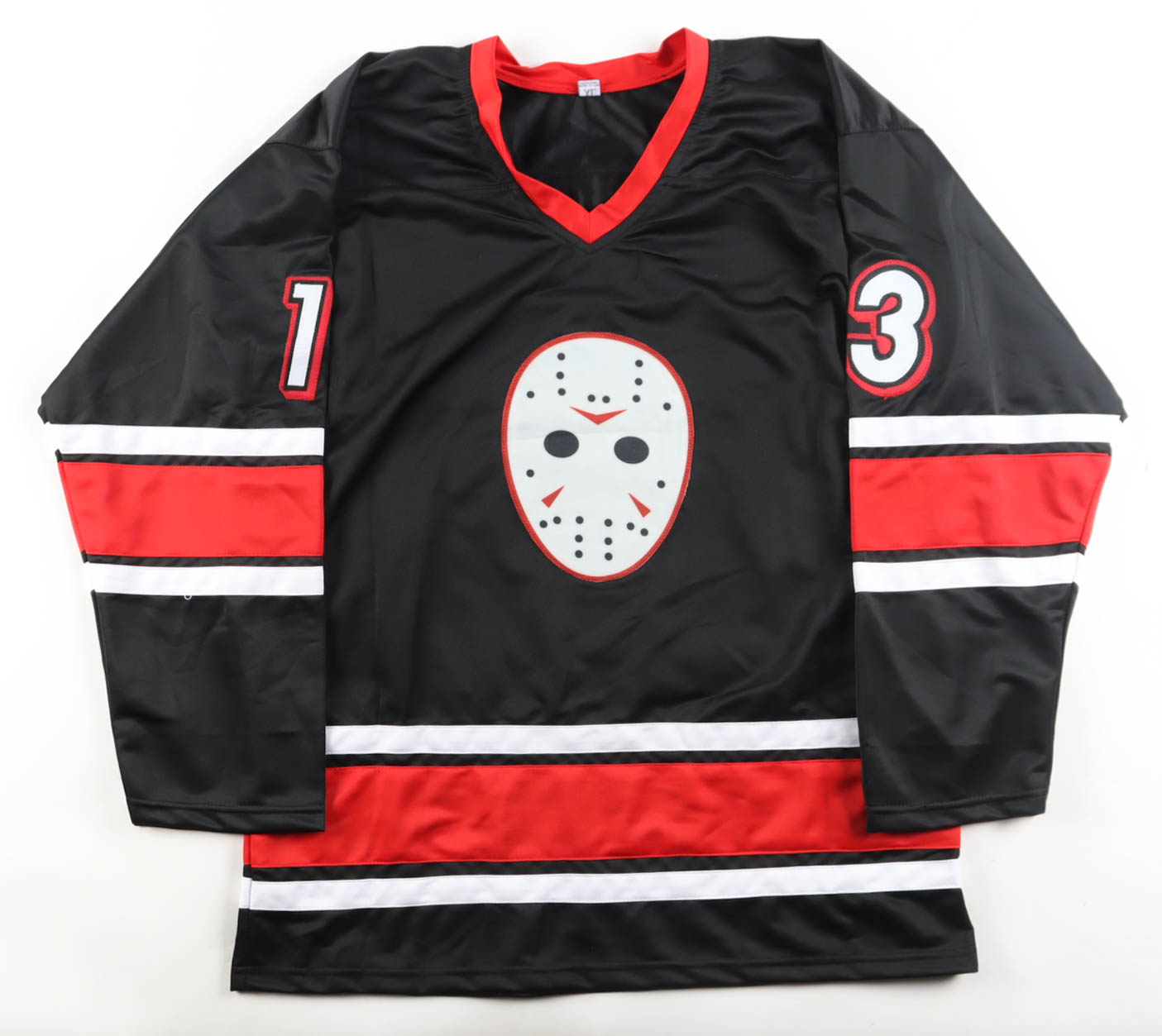 Custom jersey with everything sewn on, size XL. Hand-signed and inscribed by Ari Lehman (Jason Voorhees).