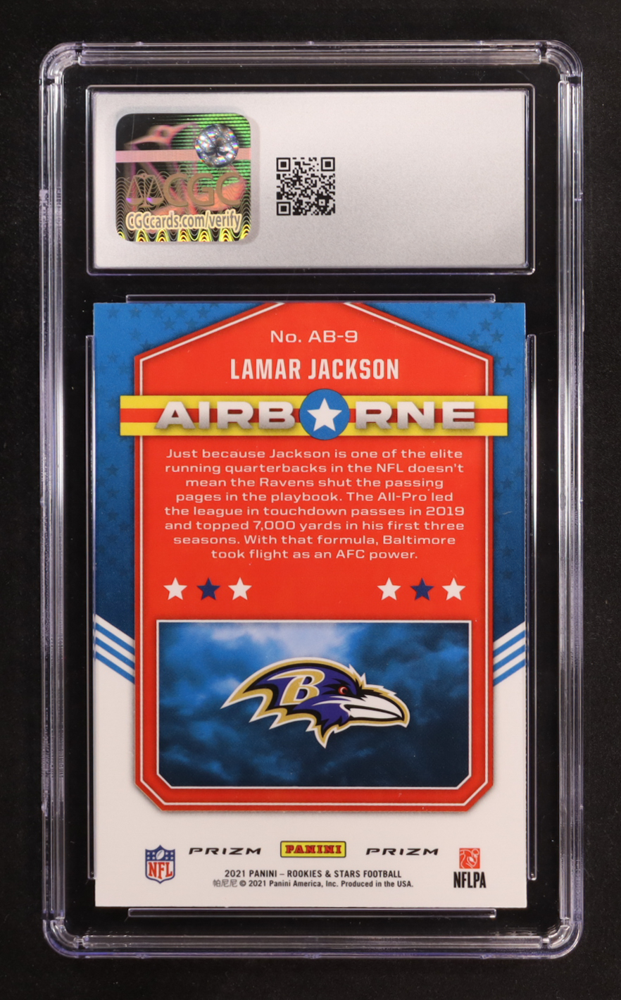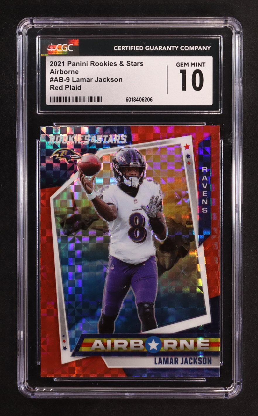 Lamar Jackson 2021 Panini Rookies & Stars Airborne Red Plaid #AB-9 (CGC 10)