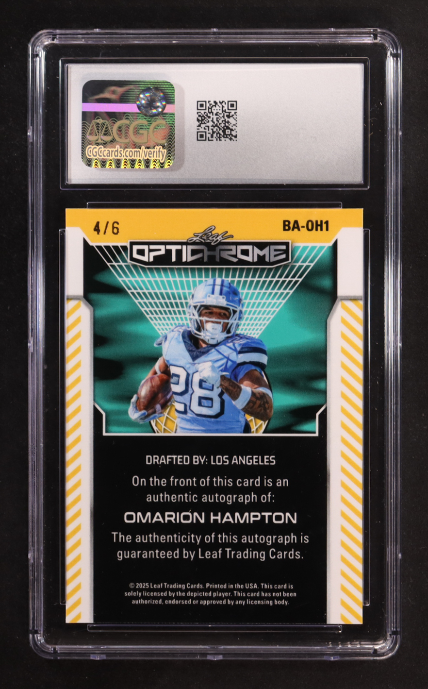 Omarion Hampton 2025 Leaf Optichrome Green Lava Autographs #BA-OH1 RC #4/6 (CGC 10 | Autograph Graded CGC 10)