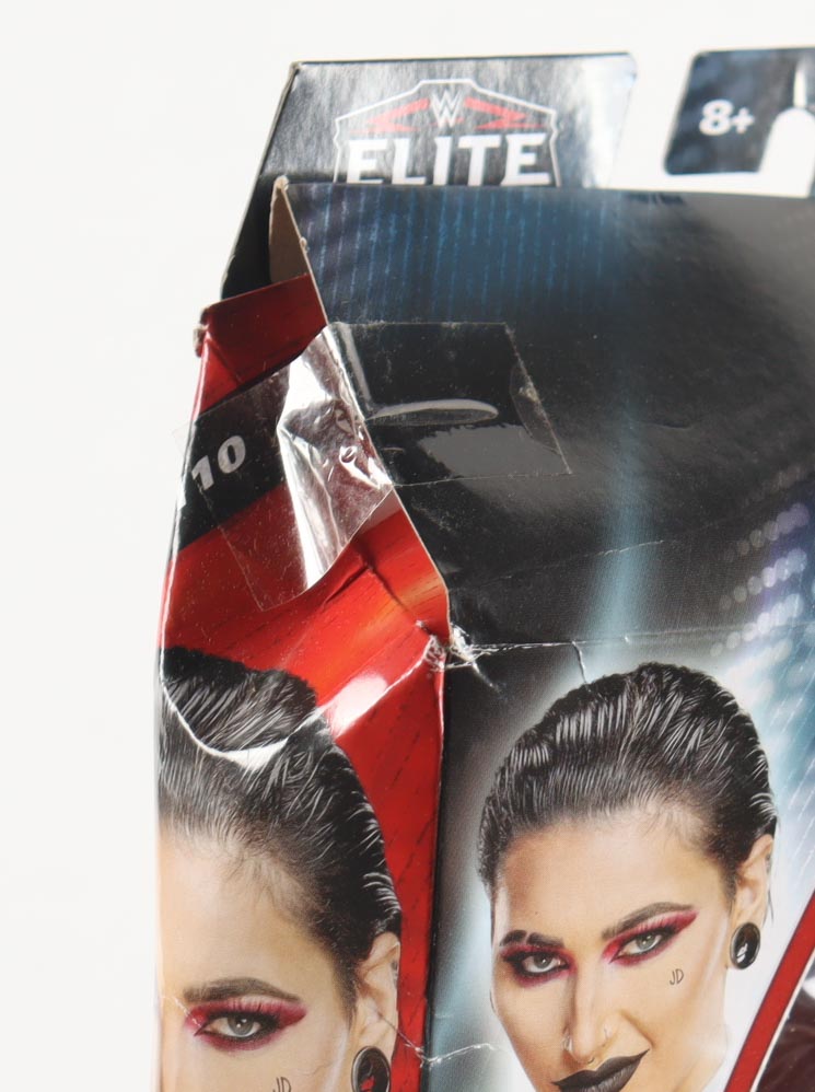Action figure measures approximately 6" in height and is hand-signed on the packaging by Rhea Ripley. Please note, the packaging is dented and torn - see photos for more detail.