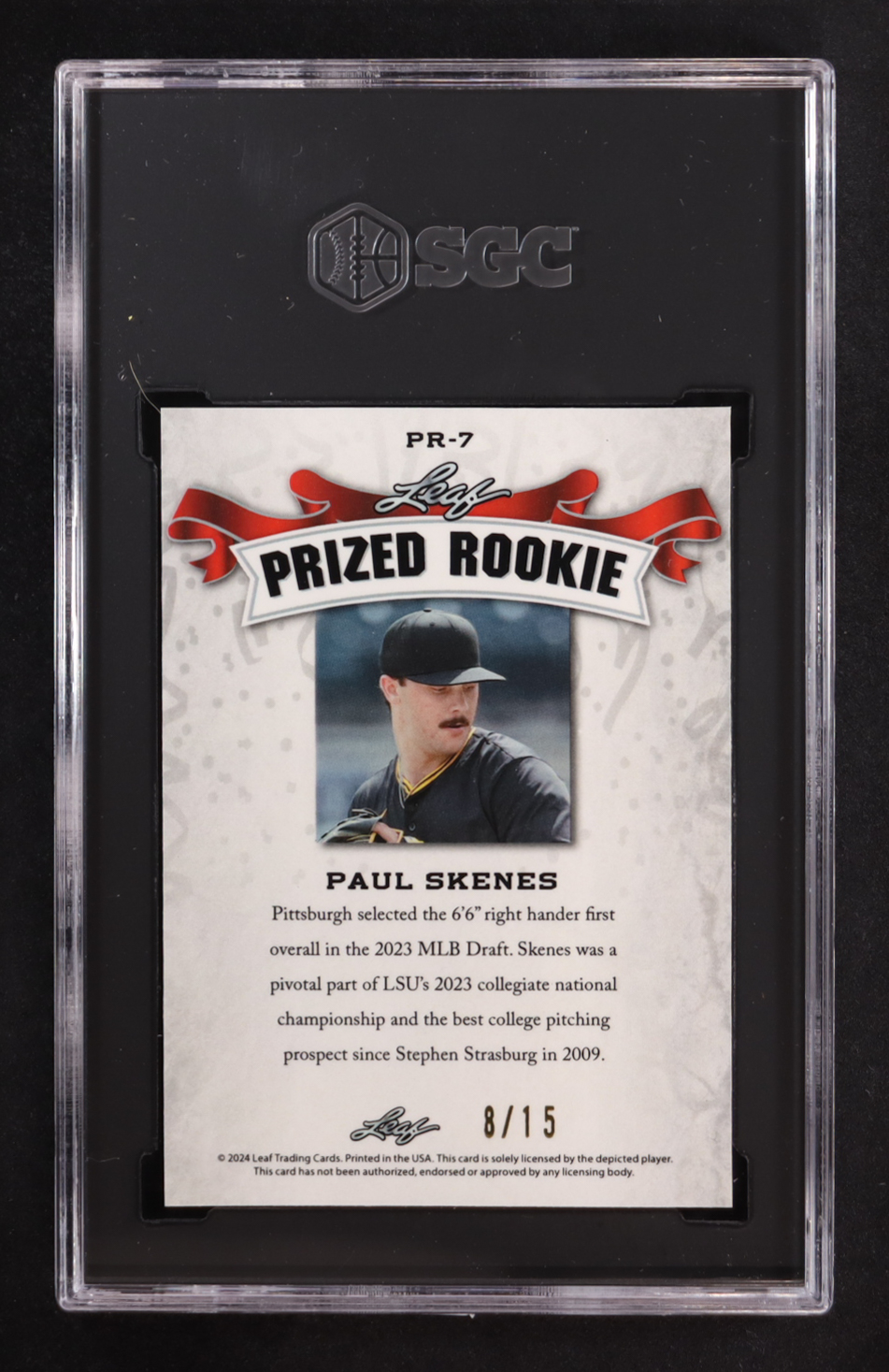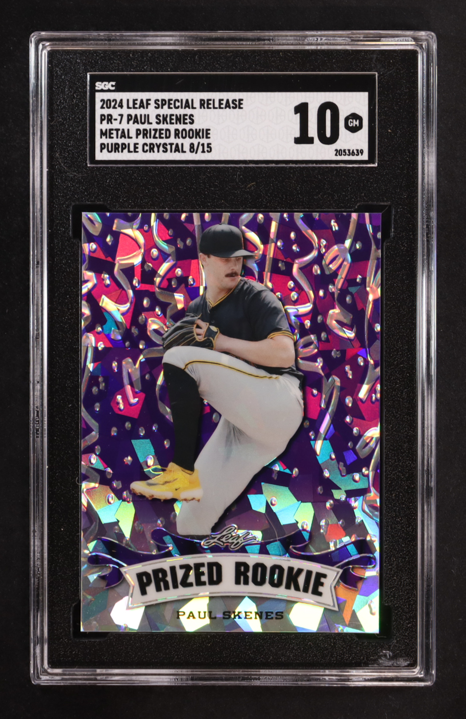Paul Skenes 2024 Leaf Special Release Metal Prized Rookie Purple Crystal #PR-7 RC #8/15 (SGC 10)