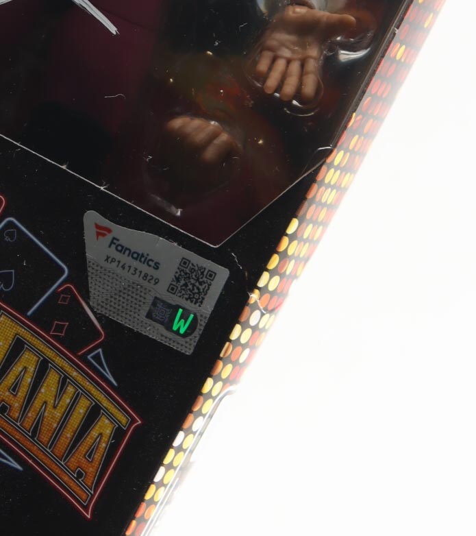 Action figure measures approximately 6" in height and is hand-signed on the packaging by Bret "Hit Man" Hart. Please note, the packaging is dented and torn - see photos for more detail.