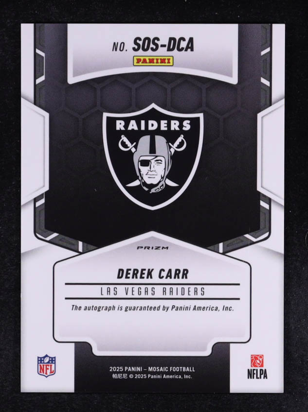 Derek Carr 2025 Panini Mosaic Showtime Signatures Choice Fusion Red and Yellow #16